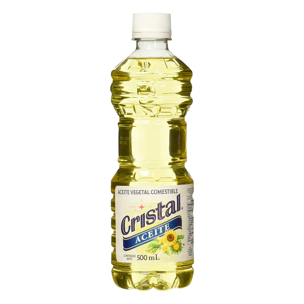 Aceite Comestible Cristal Vegetal De 500 Mililitros. Ideal Para La Preparación De Todo Tipo De Alimentos. Contiene Una Mezcla De Nutrientes Y Aceites Vegetales Como La Canola, El Girasol Y La Soya, Para Cuidar La Salud De Tu Familia.