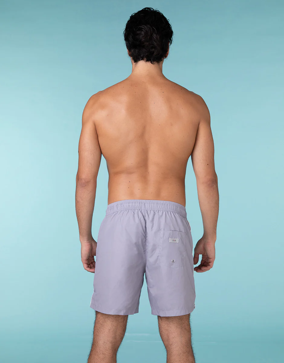 Cintura elástica a lo largo de todo el bañador y cordón ajustable. Cintura y banda de color contrastado en las caderas. Bolsillo trasero.