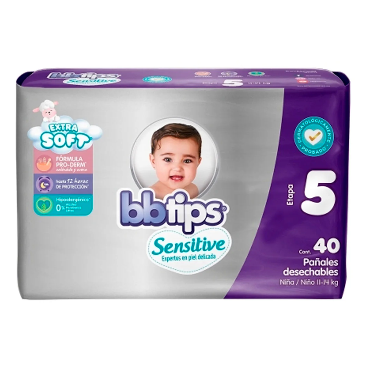 Pañales Bb Tips Up Etapa 5, De 40+4 Piezas, Cuida La Piel De Tu Bebé, A Base De Extractos Naturales De Caléndula Y Avena, De Uso Fácil