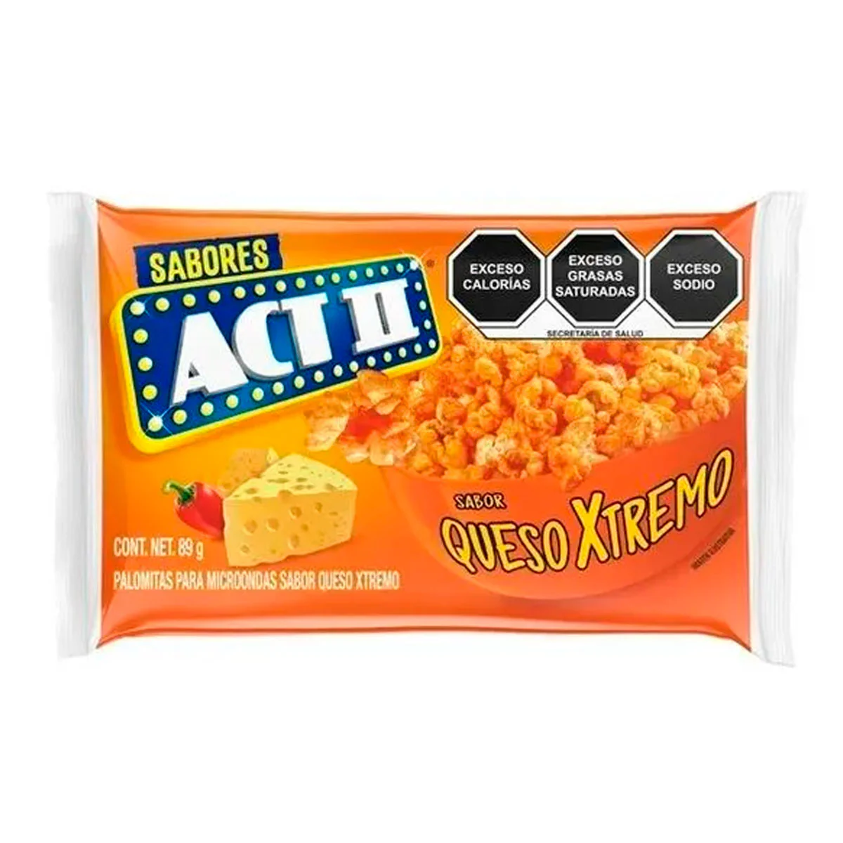 Palomitas De Maíz Act Ii Queso Xtremo En Presentación De 15 Paquetes De 89 Gramos Un Delicioso Sabor Para Disfrutar, Ideal Para Cumplir Tus Antojos. Producto De Confitería.