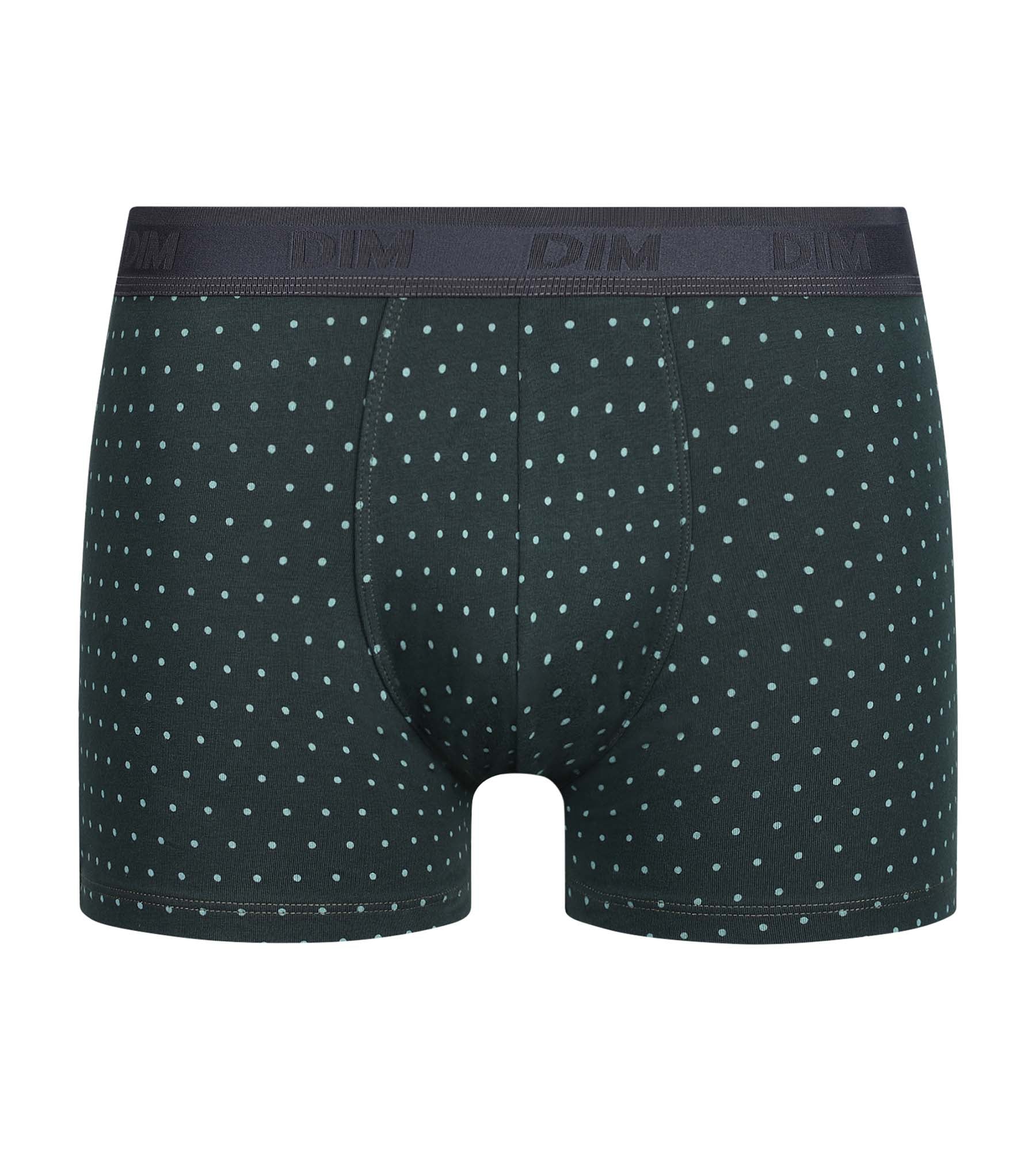Escoge la sobriedad elegante del bóxer de hombre de algodón elástico verde oscuro con lunares Dim Fancy que tiene un toque más desenfadado por su estampado. Además, la cintura negra elástica estructura y define tu figura. ¡Te sentará genial!