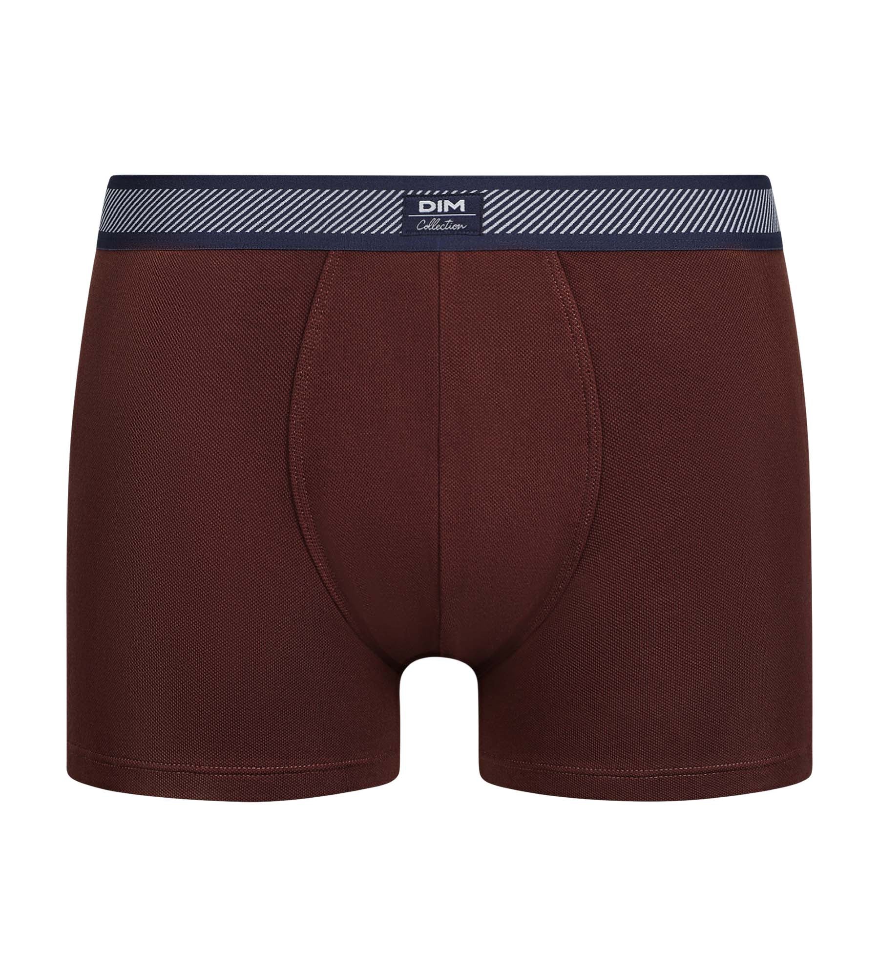 Viste cómodo de dentro para afuera con una ropa interior de la mejor calidad. ¡Sin olvidar el estilo! El bóxer de hombre de algodón piqué modal y cinturilla a rayas rojo vino Dim Smart aúna ambos factores: confort y elegante. Gracias a su material, el algodón modal, pero también al color rojo vino, ¡precioso! Sin olvidar el estilo “cuello de polo” de su cintura elástica rayada. ¡Una genialidad que le da un toque “preppy” actual!