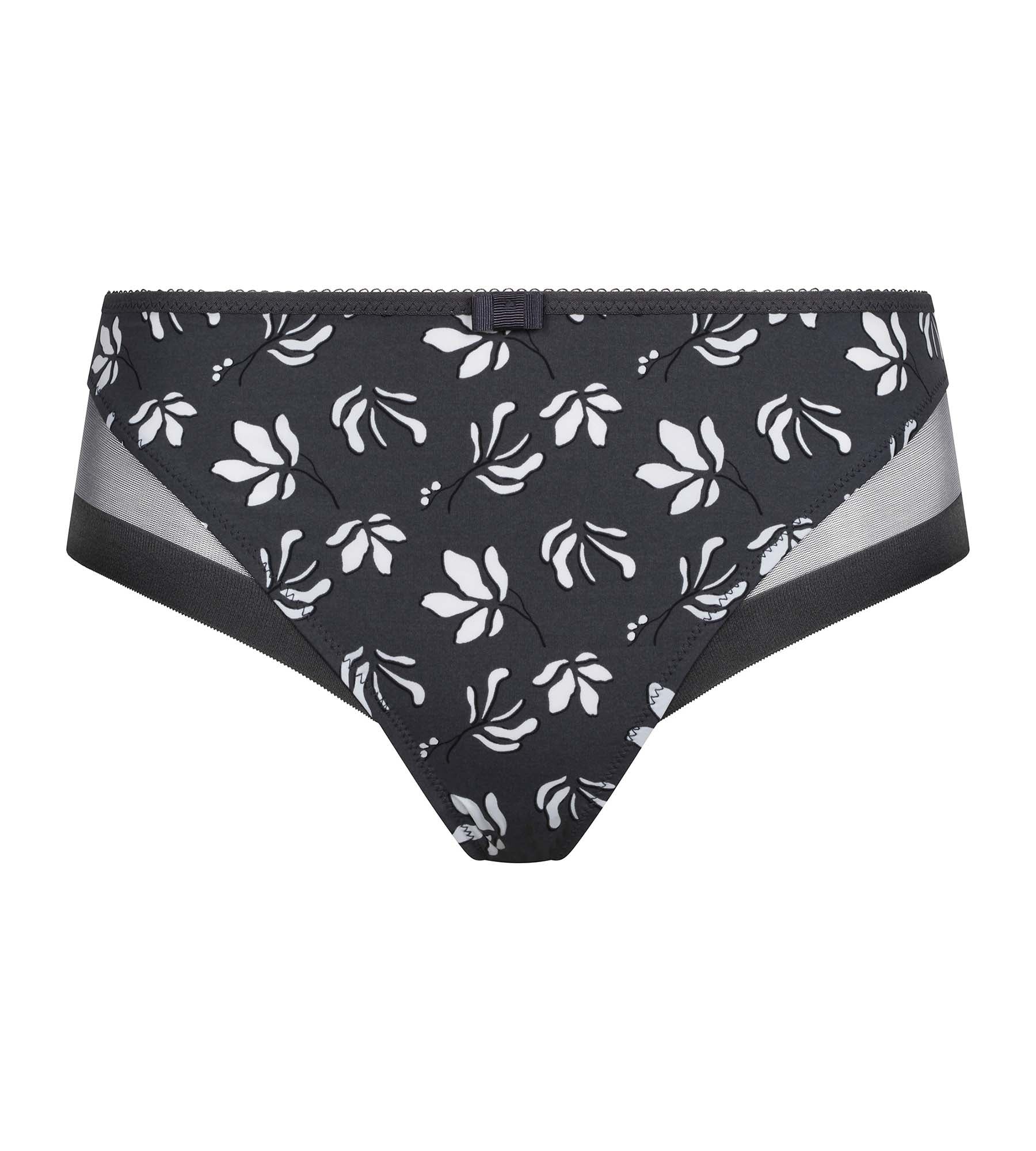 Para un look refinado y moderno, elige la braguita para mujer Generous Essentiel de microfibra y tul antracita, ¡con Estampados florales azules!