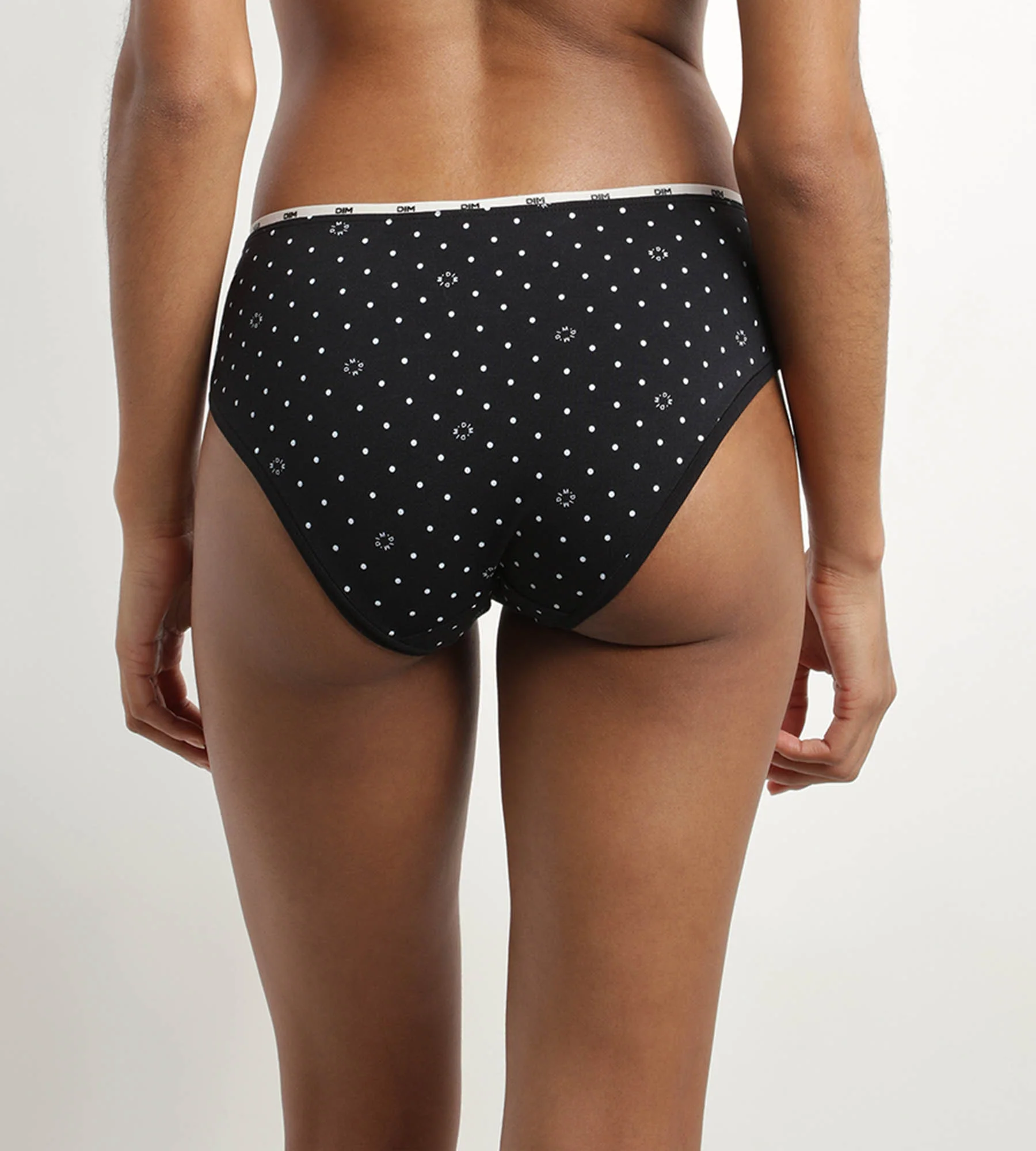 Saca el lado alegre a cada día con la coqueta braguita de mujer de algodón elástico Negro Dim Icon Essentiel