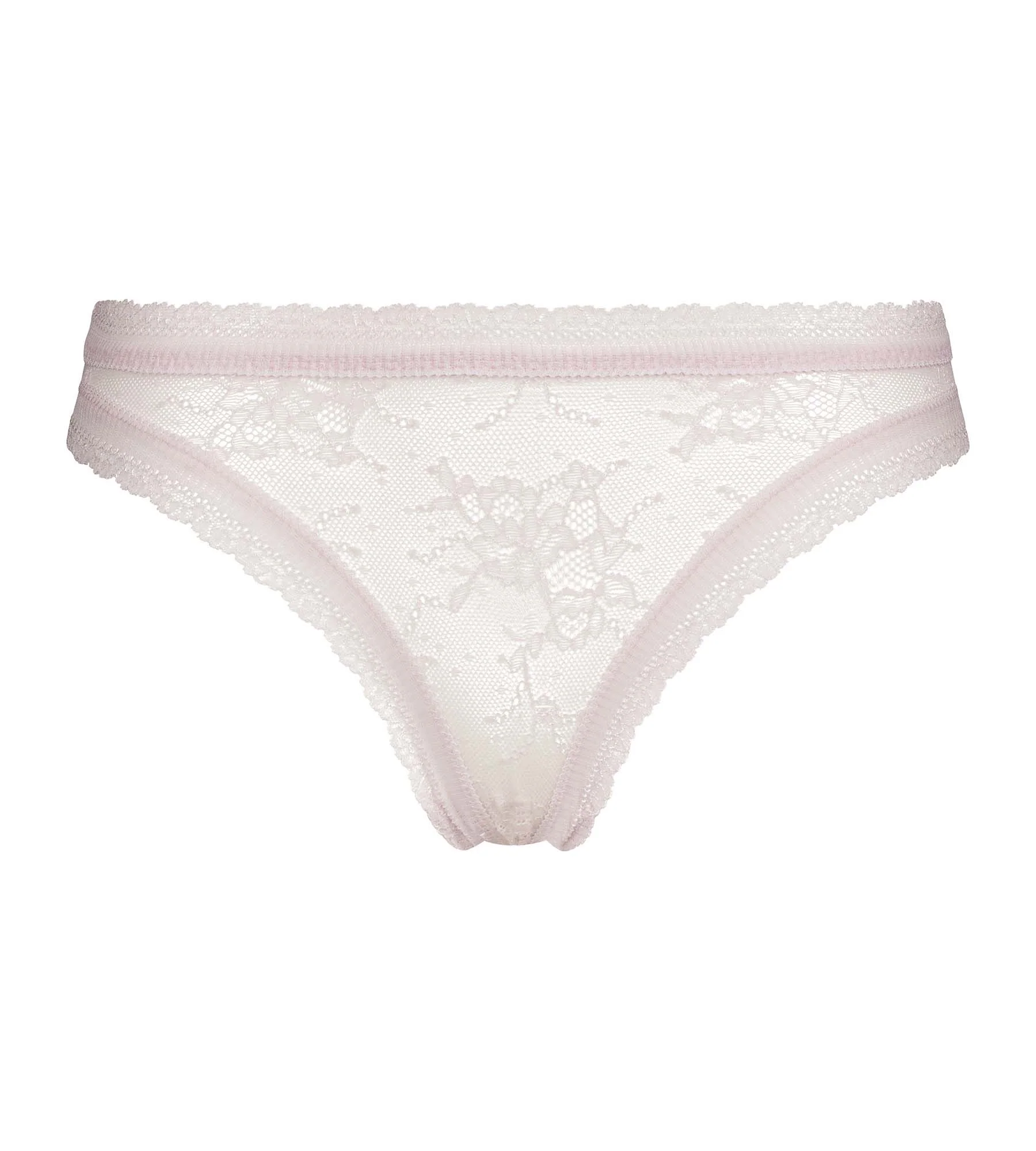 - Los ribetes de encaje en contraste que estructuran esta braguita transparente