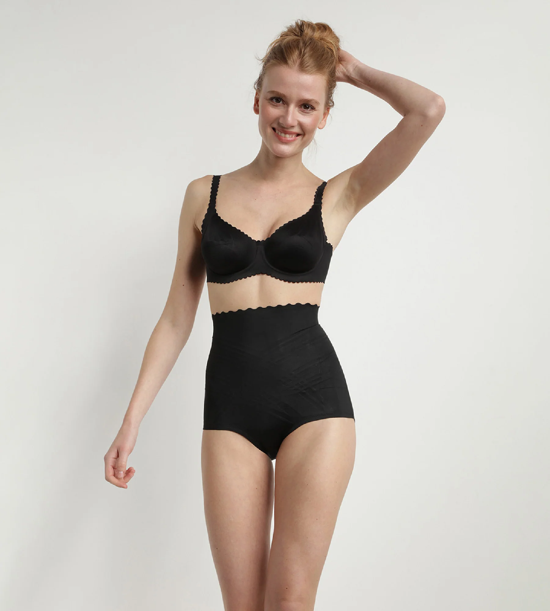 ¡Moldea tu cuerpo de diosa con la braga de cintura alta efecto moldeador 3 en 1 negra Beauty Lift! Revolucionaria, esta braga femenina alisa tu vientre, cintura y caderas para una silueta más armoniosa. Combínala con el sujetador tipo foulard negro Beauty Lift para unos conjuntos de lencería femeninos.