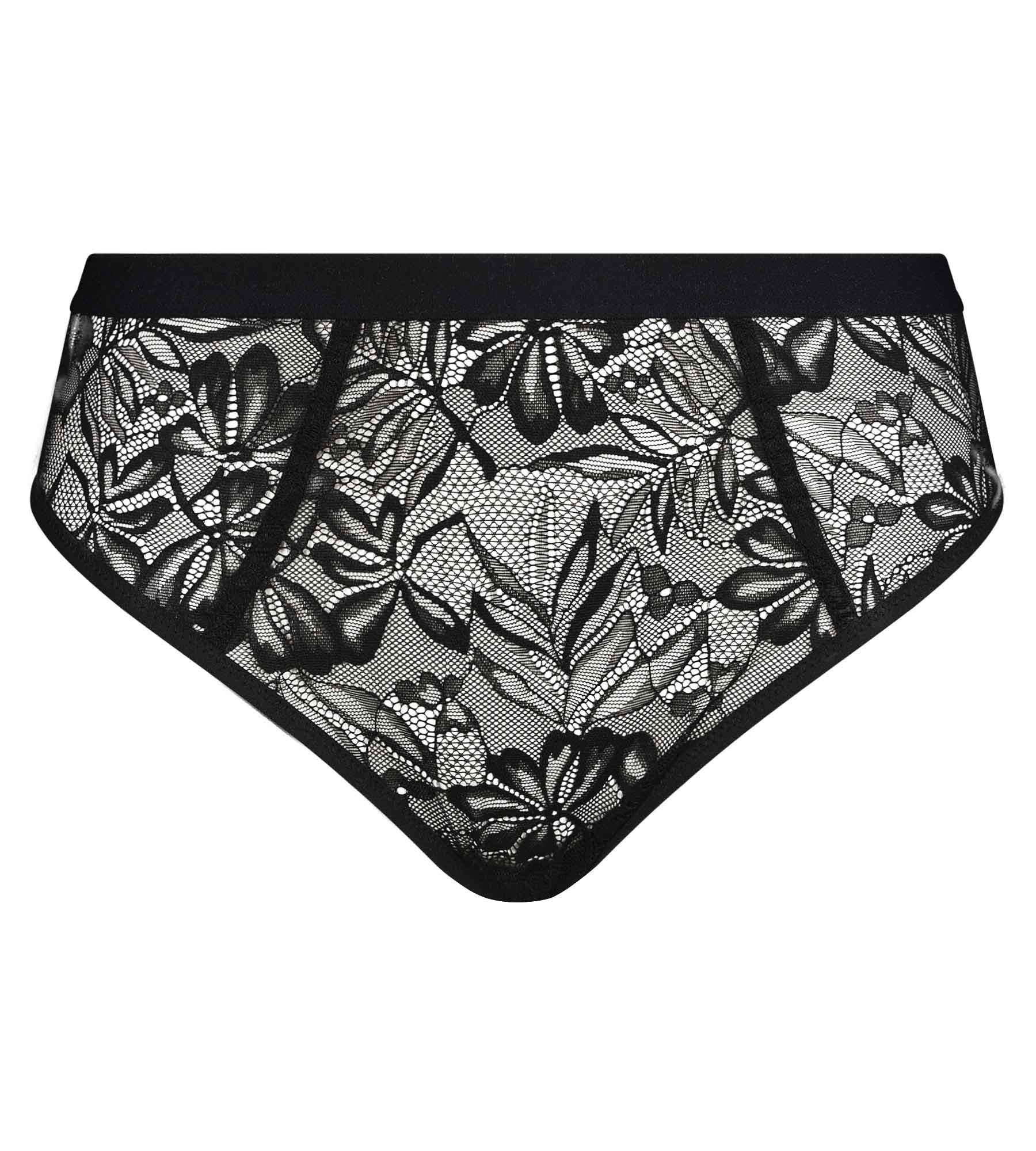 Luce moderna, cómoda y sexi con la braguita de talle alto de encaje negro con estampado vegetal Dim Mod