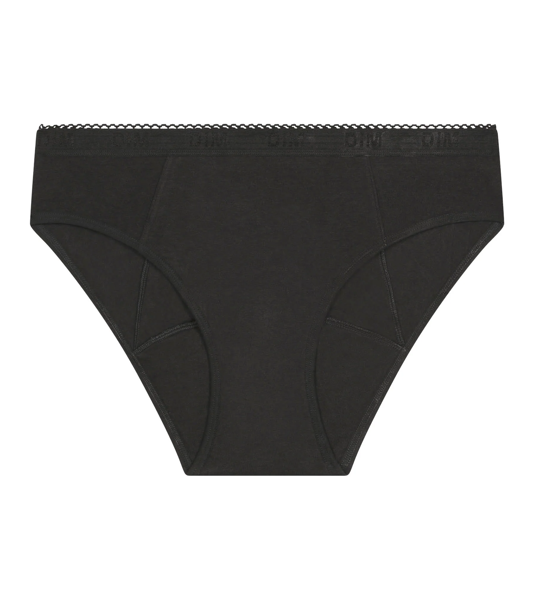 Elige la braguita menstrual Dim Protect de algodón orgánico negro – flujo muy abundante, ¡diseñada para darte tranquilidad durante los días de flujo abundante!