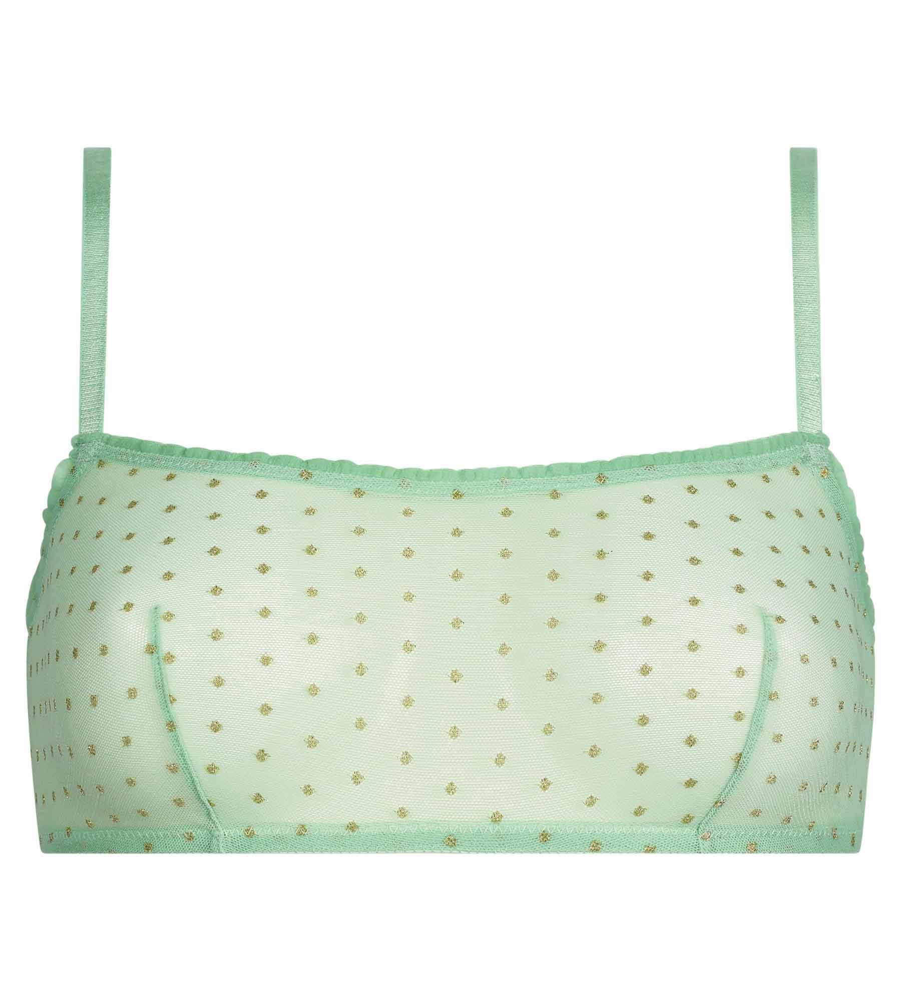 Adéntrate en un universo bucólico con el bralette de tul transparente verde manzana con estampado de lunares Shiny Mesh de Dim