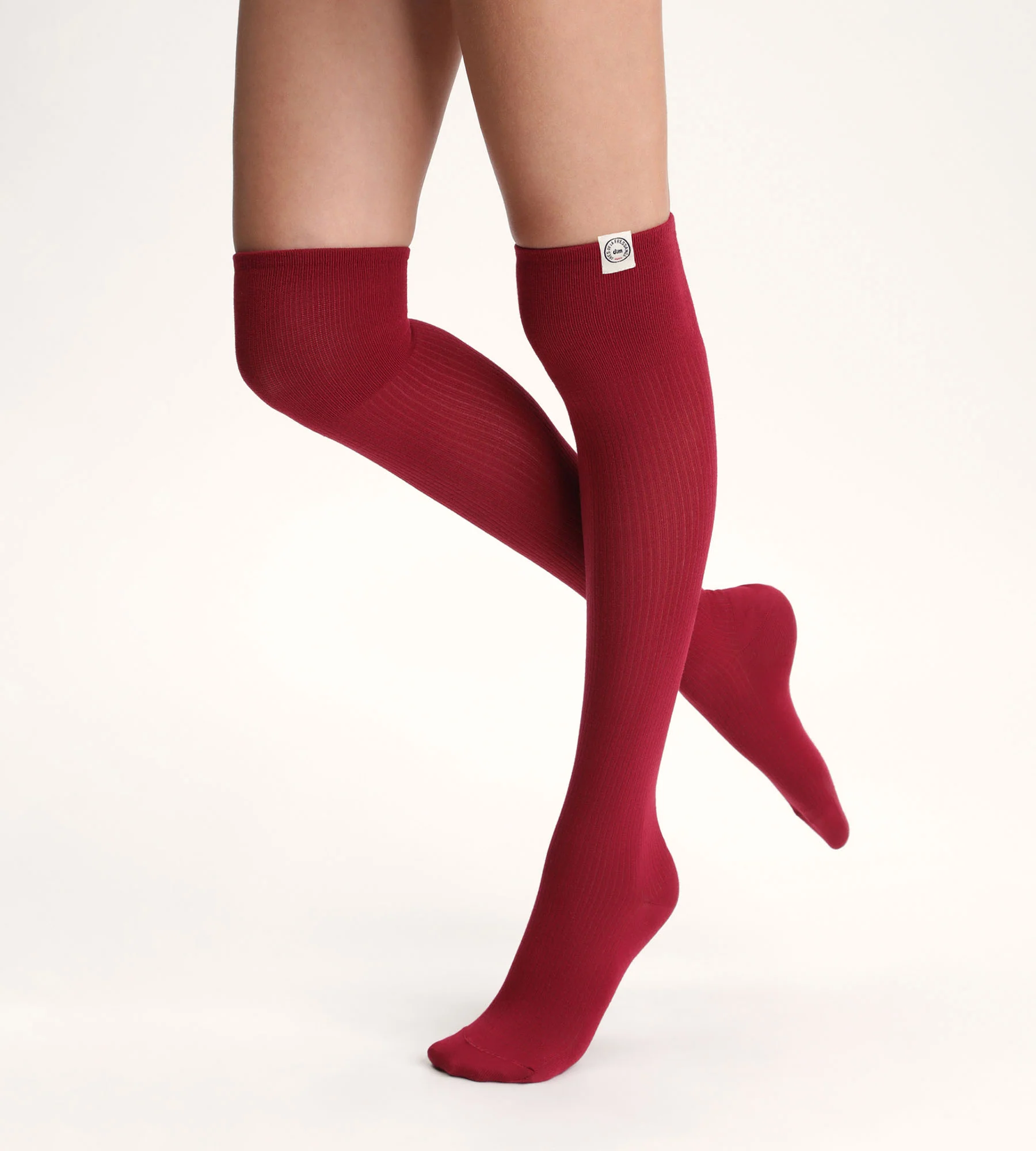 Adopta un look llamativo con los calcetines altos Dim x Inès de La Fressange en punto de canalé y tono Rumba Red.
