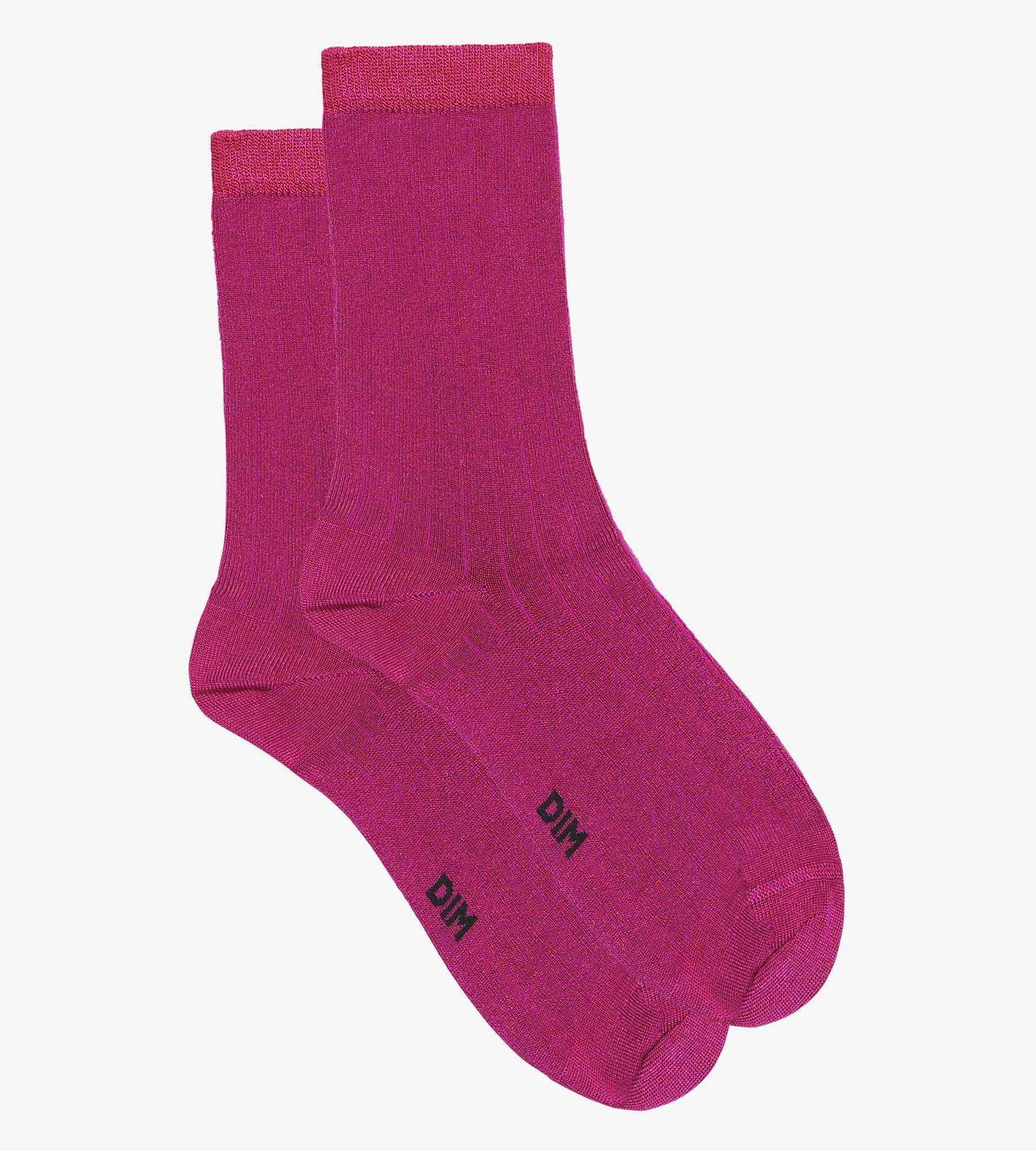 Aporta dinamismo a tus conjuntos con los calcetines de canalé grueso para mujer Dim Mode, ¡en un color fucsia intenso muy acidulado!