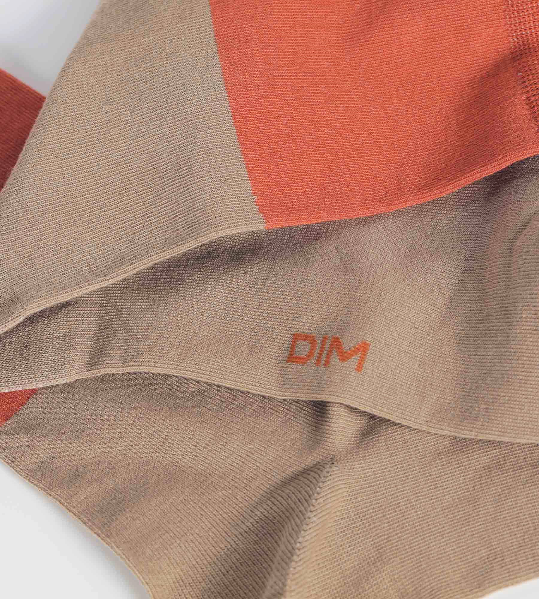 Combinando estilo y comodidad, los calcetines de hombre Dim Mode de algodón peinado de primera calidad realzan tus looks diarios con un toque de originalidad. La combinación de colores Praliné y Mandarina es discreta cuando estás de pie, ¡y añade una dosis de dinamismo cuando estás sentado! Una combinación perfecta de elegancia y moda para todos los días.