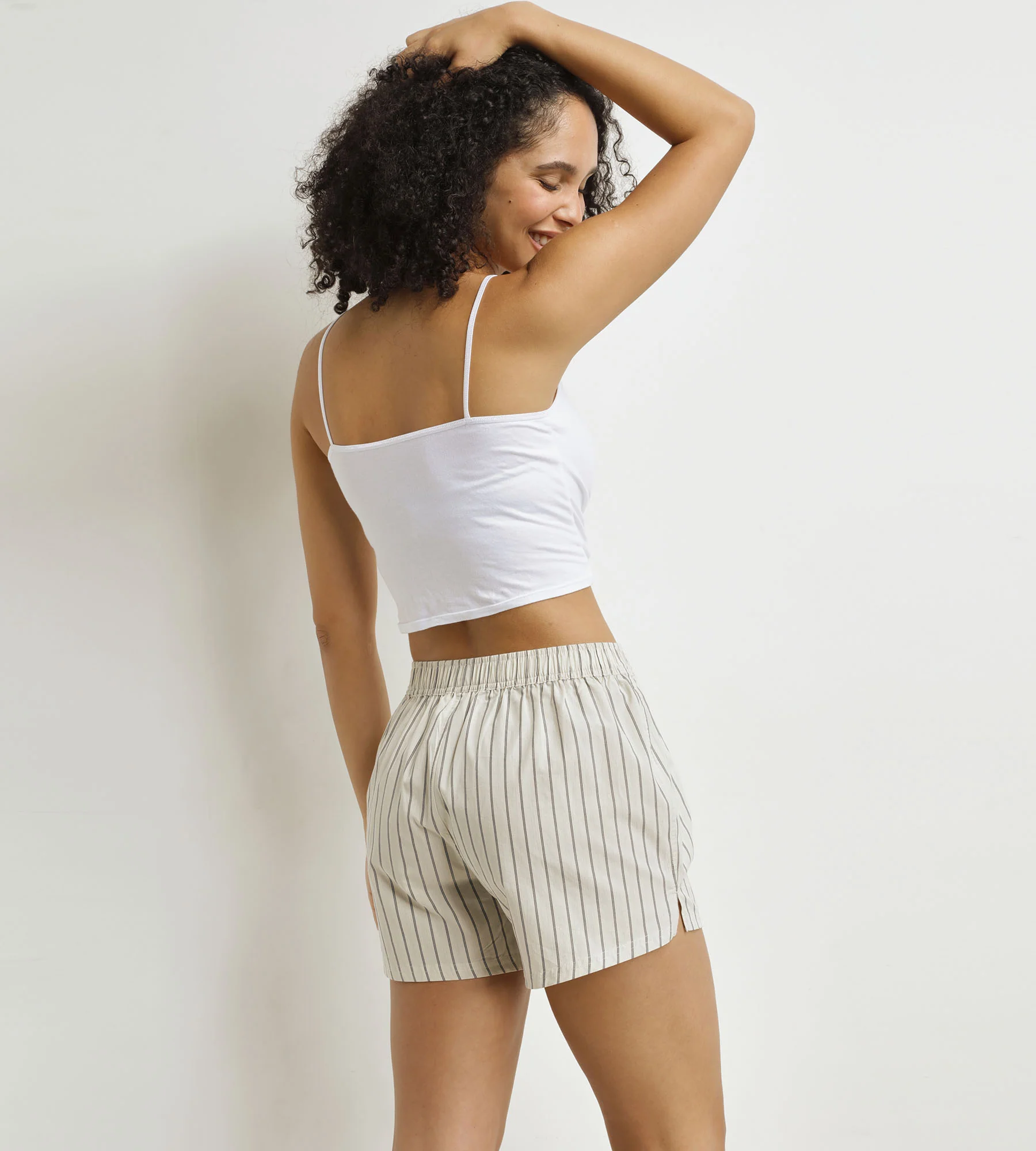 Amamos el estilo rétro-chic de los shorts de mujer de popelín a rayas Gris Dim x Inès de la Fressange.