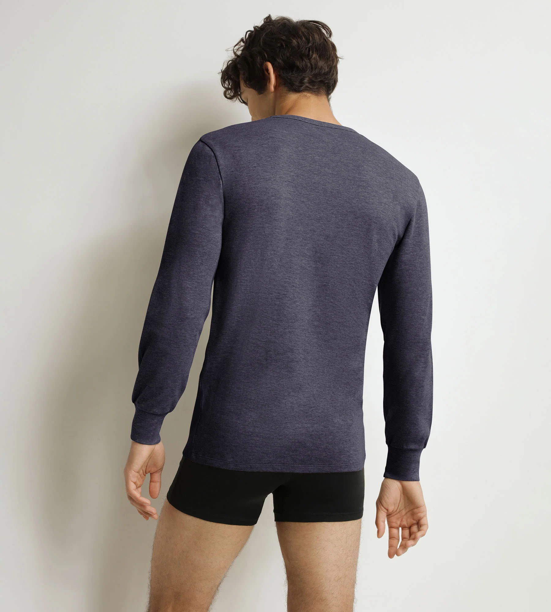 Esta camiseta térmica para hombre ha sido diseñada para acompañar los días fríos con comodidad y protección. Su ligero tejido de algodón proporciona una buena regulación del calor, sin sensación de humedad. Diseñada con cuello redondo y manga larga, esta camiseta térmica para hombre Dim Thermal puede deslizarse bajo una capa de ropa o llevarse como top por sí sola, con igual facilidad y estilo. En este tono gris azulado, ofrece una alternativa más moderna, para variar tus básicos del día a día.