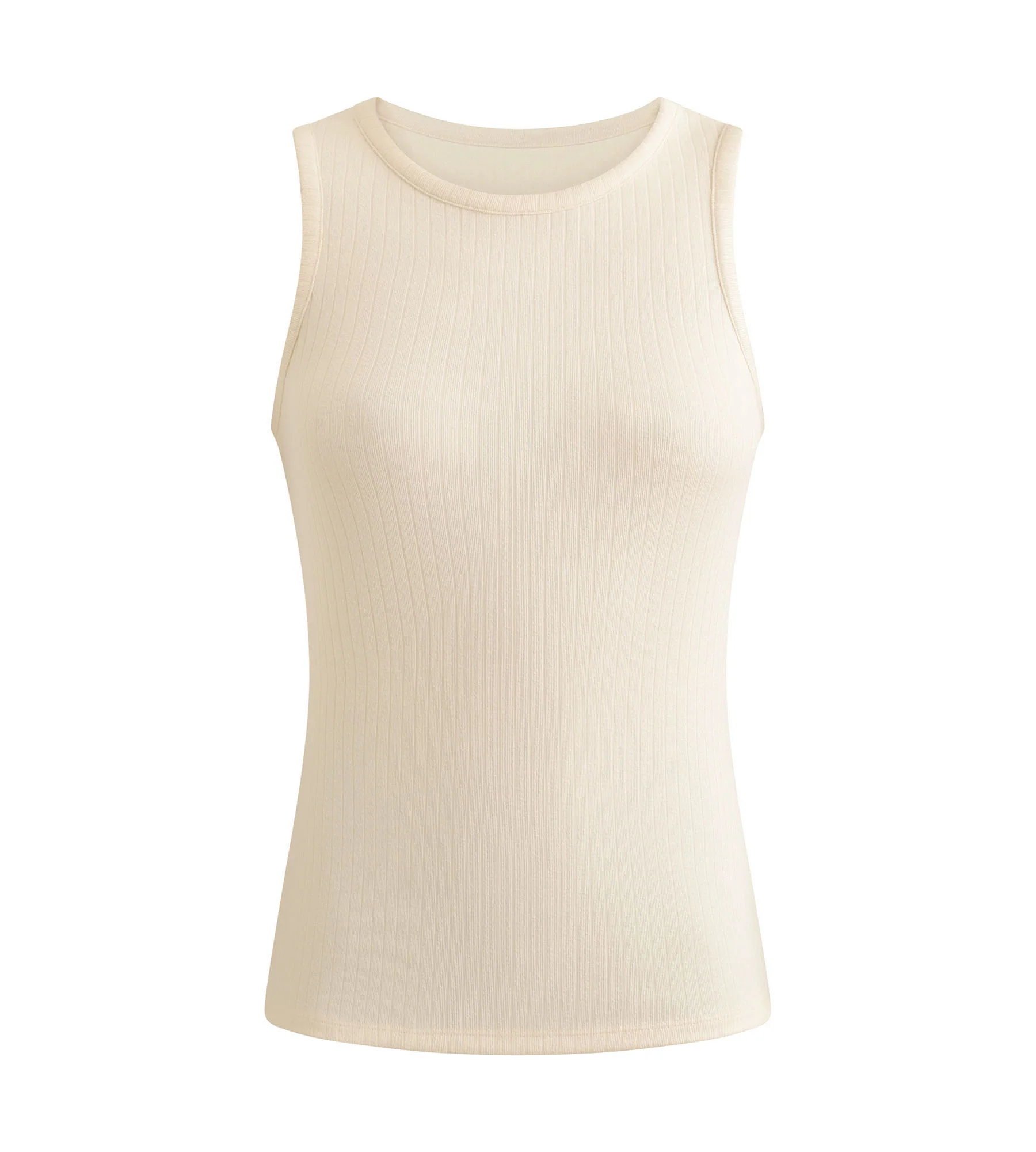 Con su tejido de punto aislante y su estilo discreto, la camiseta de tirantes para mujer Beige côtel; Dim Thermal x Inès de la Fressange es tu aliada para el invierno!