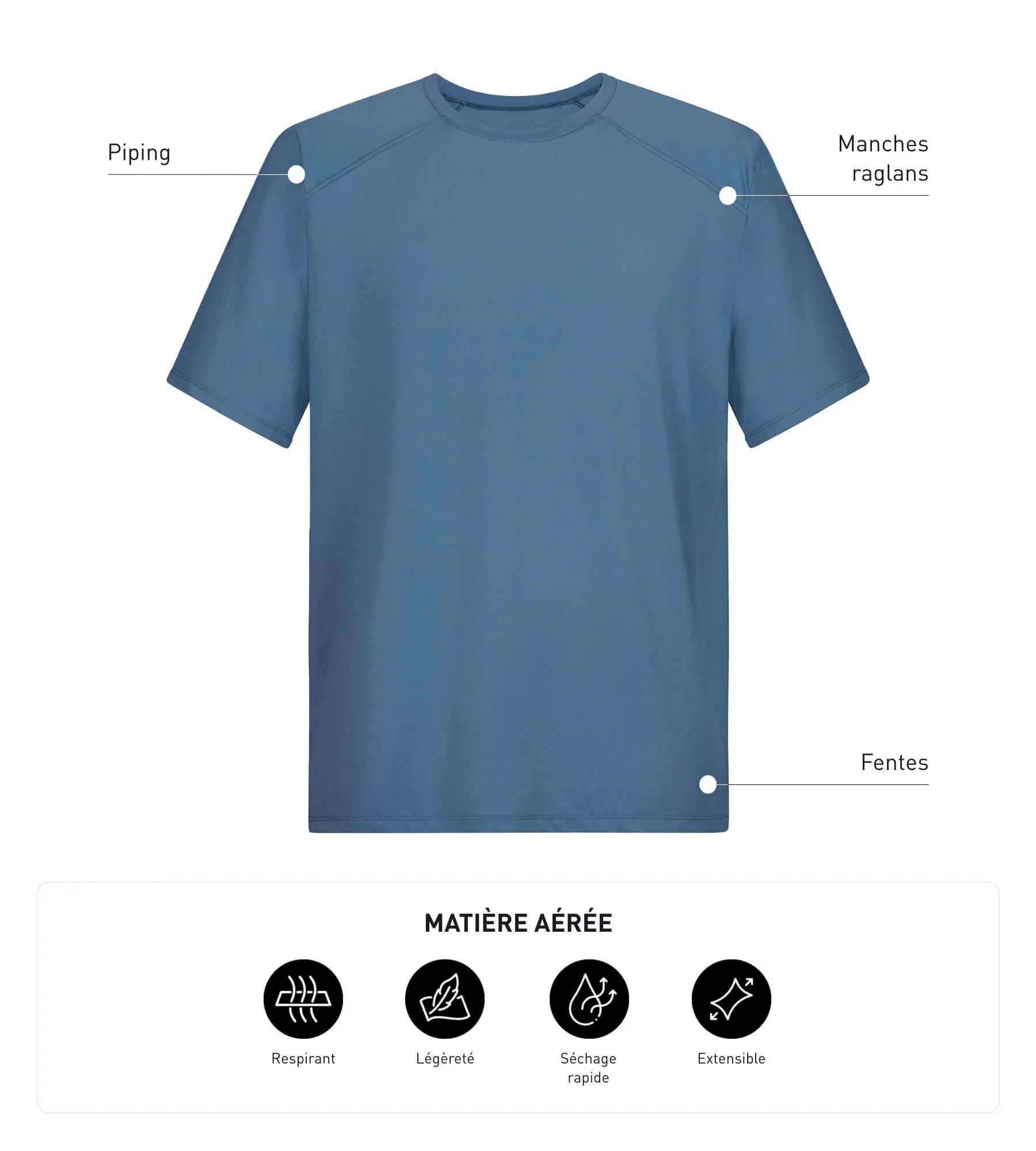 Prepárate para afrontar cualquier reto con la camiseta deportiva de hombre en tejido técnico azul Dim Move