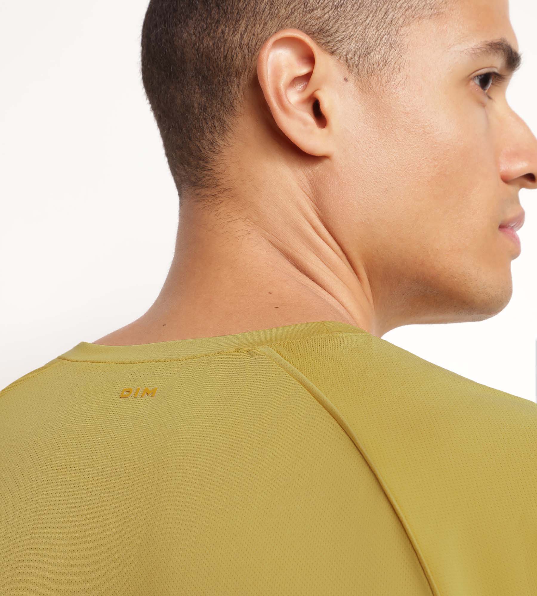 ¿Te gusta la ropa deportiva de colores llamativos? ¿Te alegran el día? En ese caso, prueba la camiseta deportiva de hombre en tejido vaporoso oliva Dim Move. ¡Te encantará!