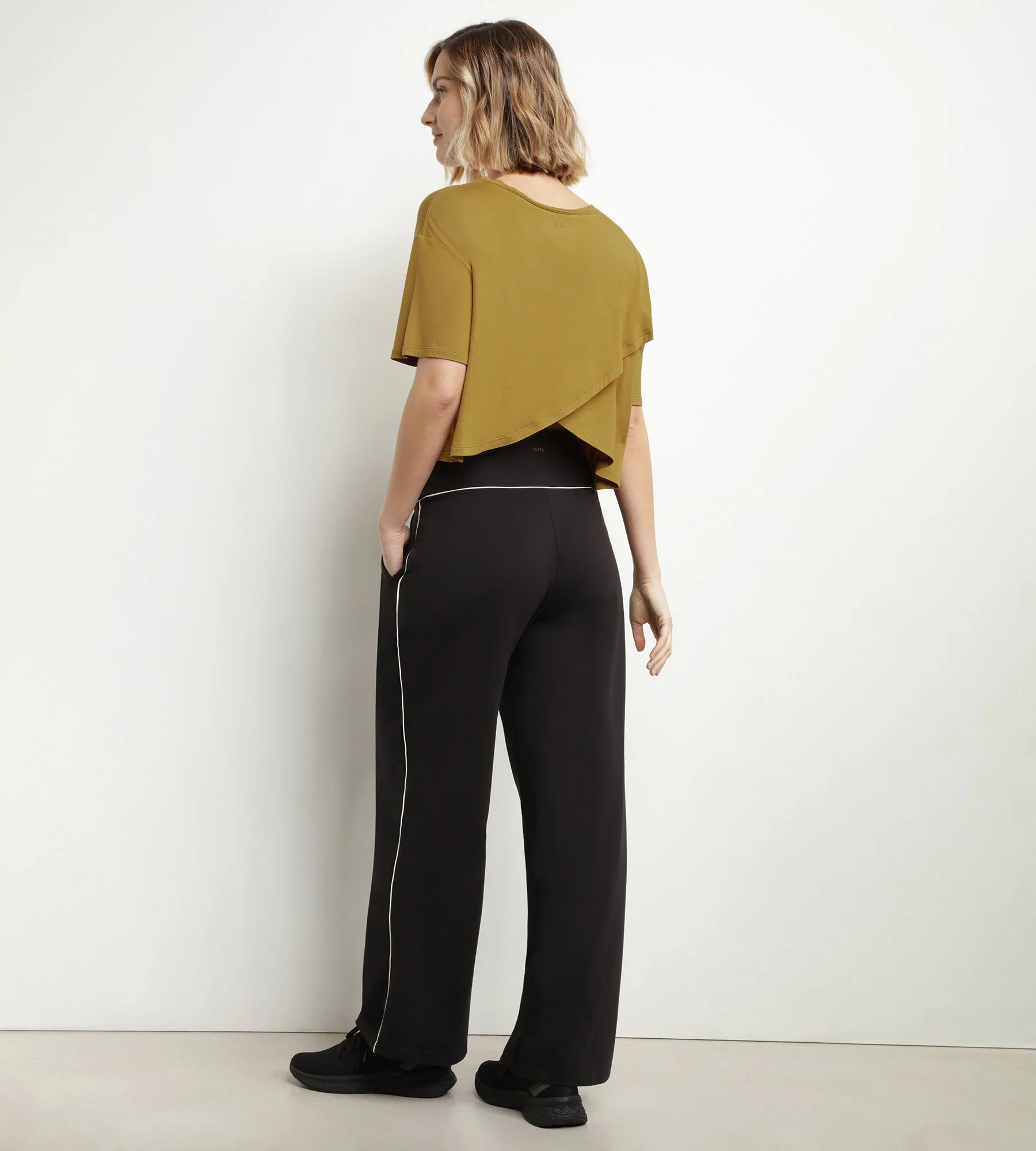 Ideal para hacer deporte con estilo, libertad y comodidad, esta camiseta deportiva de viscosa verde oliva se puede combinar con nuestros sujetadores y culottes deportivos de la misma gama Dim Move.