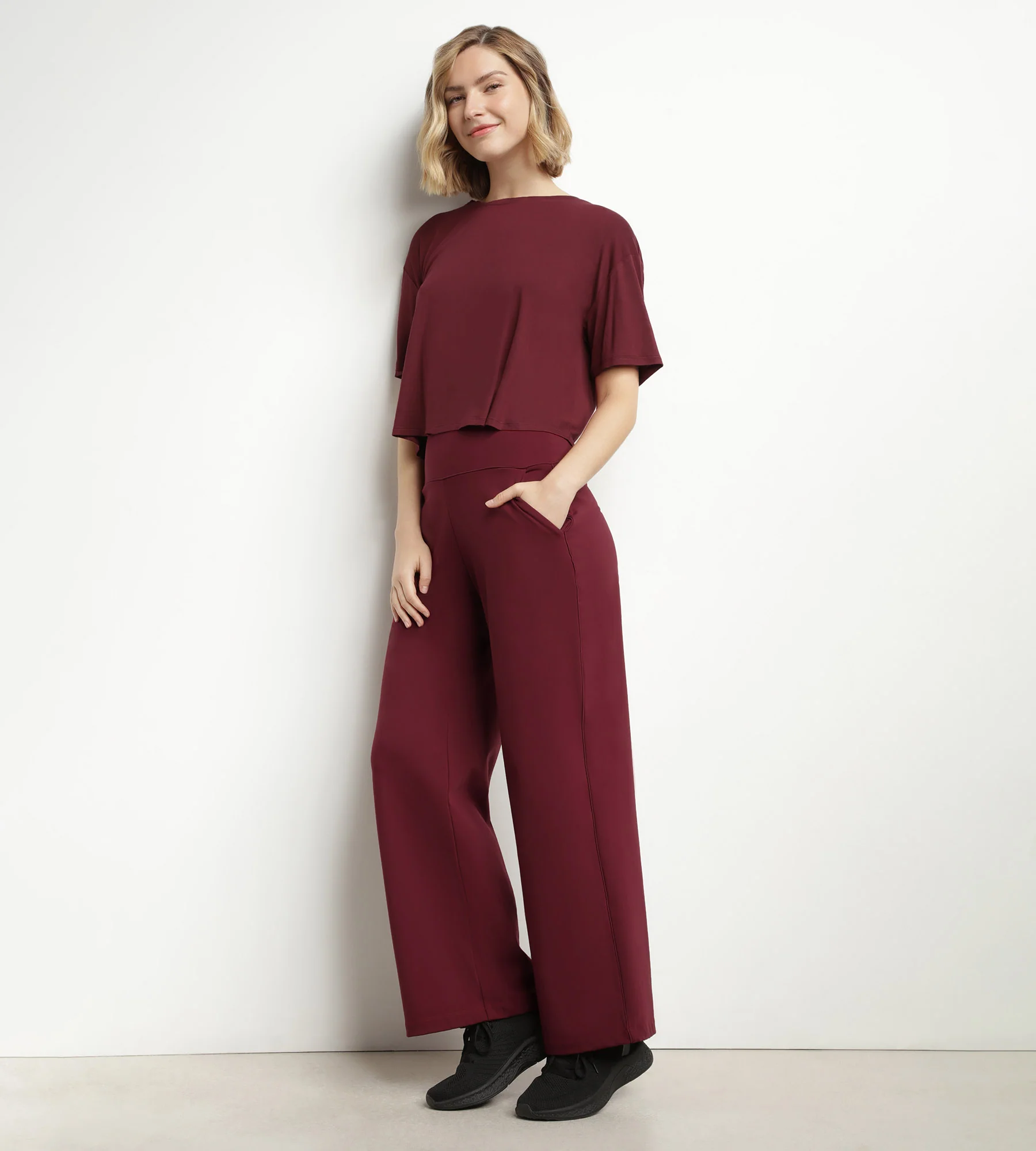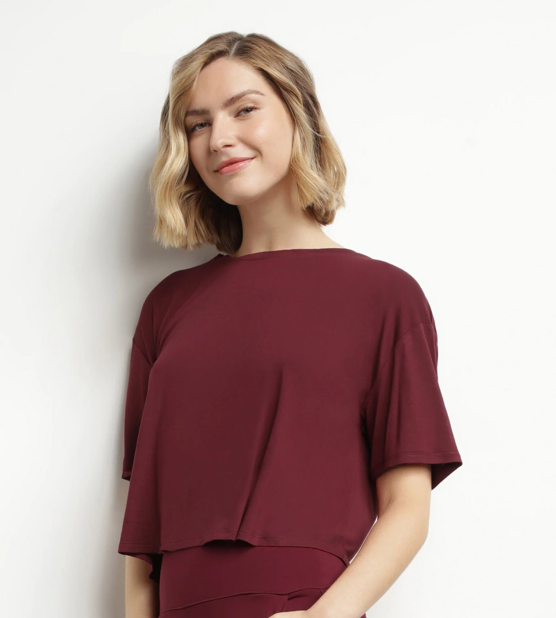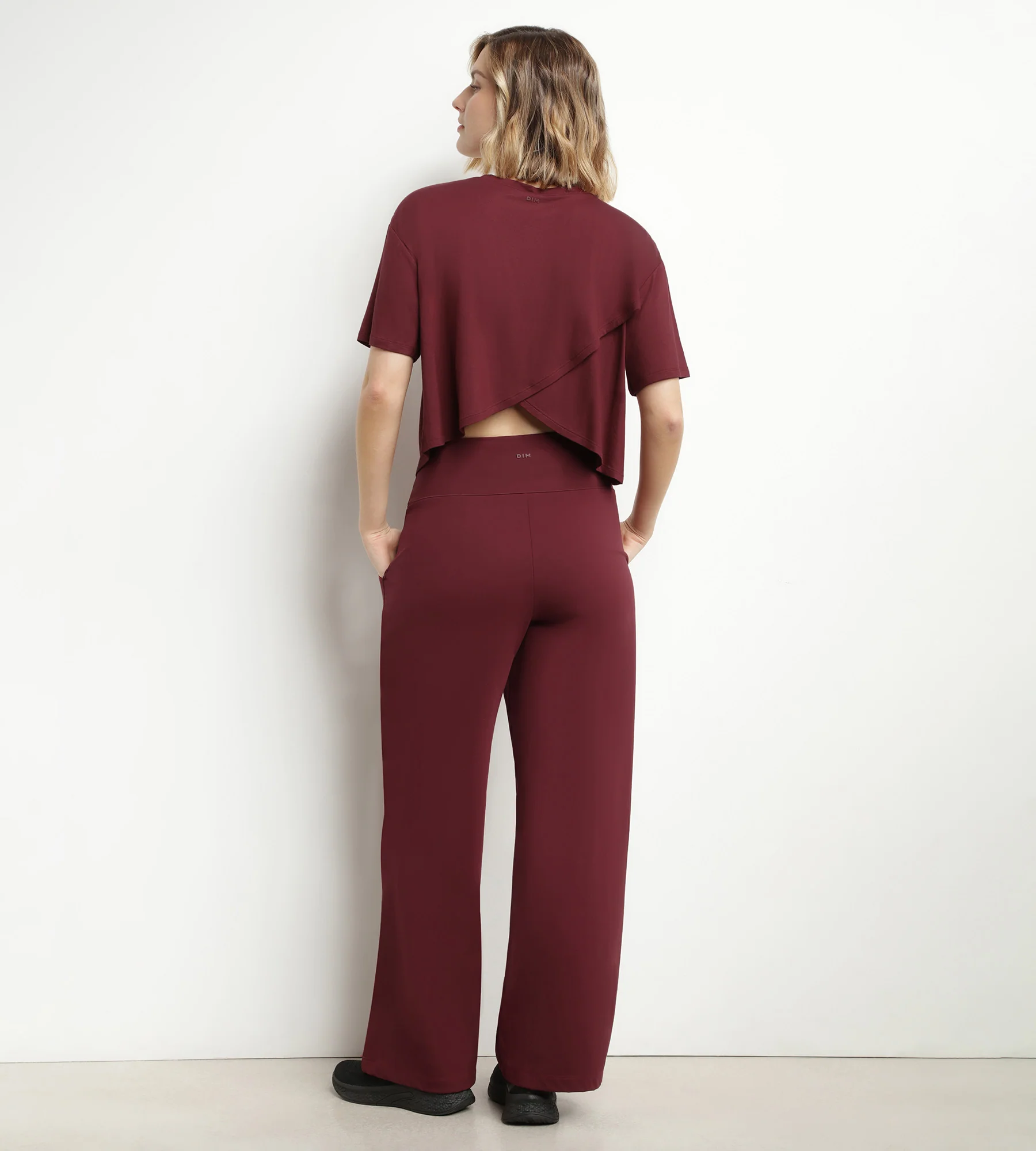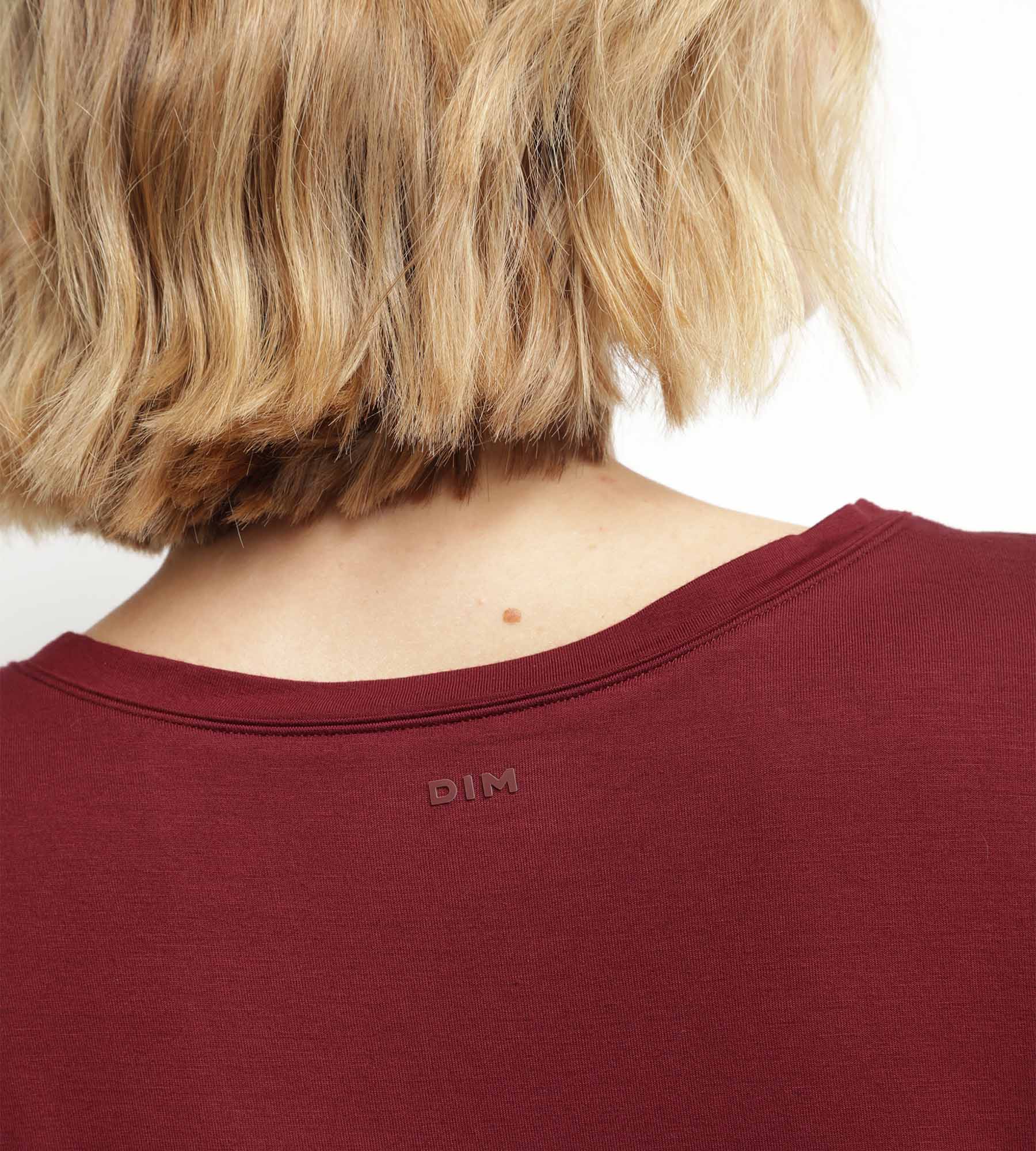 Holgada, ligera y libre al hacer deporte con la camiseta deportiva con doble abertura en viscosa burdeos Dim Move