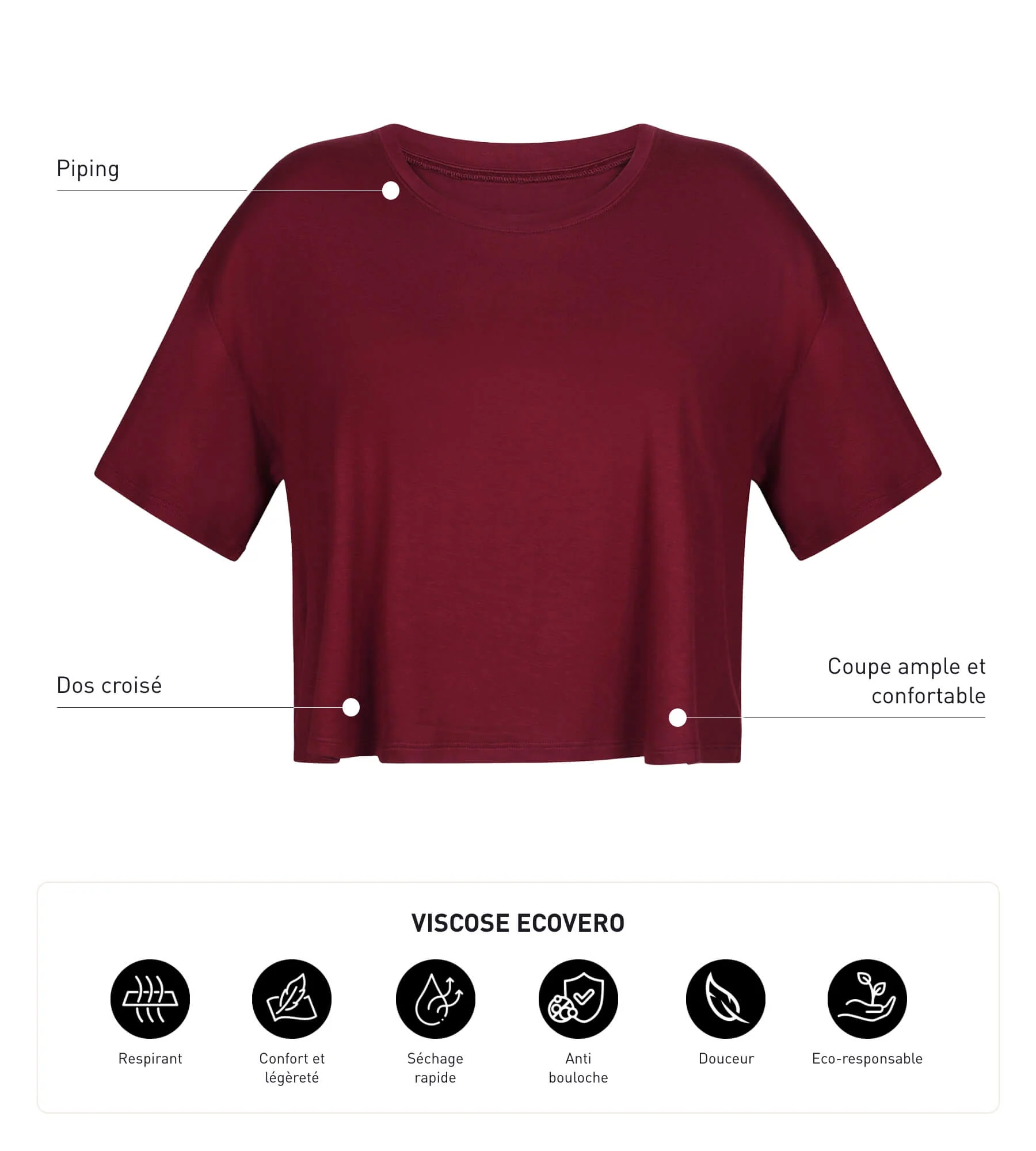 Elige ropa deportiva femenina con carácter, estilo y, sobre todo, eficiencia a la hora de practicar deporte intenso. La viscosa es un material técnico ideal para ello. ¿Por qué? Por su rápida transpiración, su fluidez, ligereza y suavidad. ¡Nos encanta! La camiseta deportiva con doble apertura en viscosa burdeos Dim Move no te va a defraudar, además, tiene un corte oversize desenfadado que es tendencia.