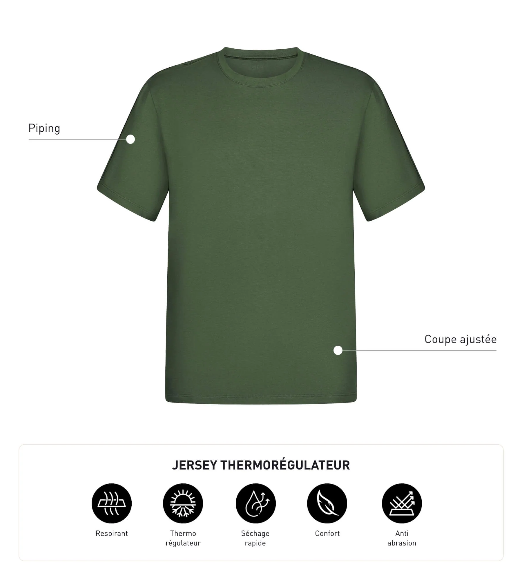 Mejora tu bienestar durante el ejercicio con la camiseta deportiva termorreguladora de hombre verde caqui Dim Move