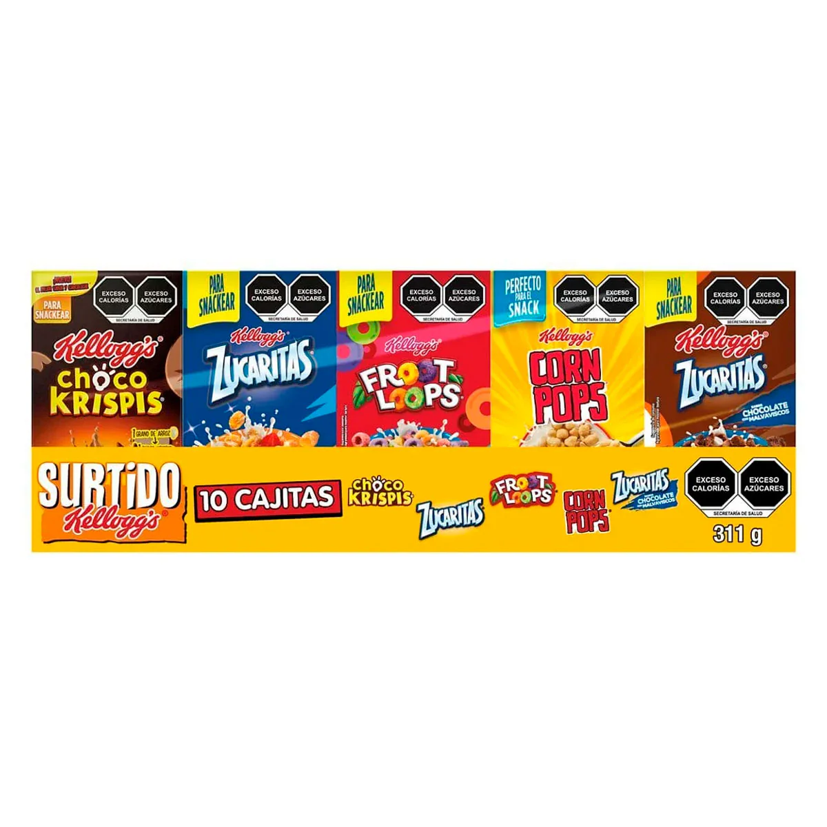 Cereal Kellogg`S Surtido, En Una Presentación De 10 Piezas de 311 Gramos, Disfruta De Su Sabor En Cada Desayuno. Cereal De Maíz, Trigo Y Avena, Adicionado Con Vitaminas Y Minerales.