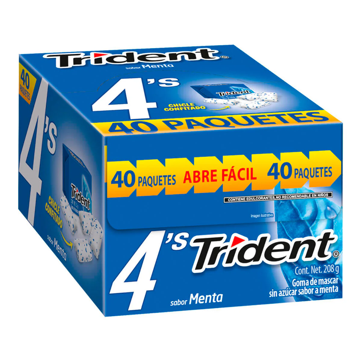 Chicle Trident 4’s, Sabor Menta. Presentación Value Pack 12 Piezas De 30.6 Gramos. Refresca Tu Mente. Goma De Mascar Sin Azúcar Sabor Menta, Ideal Para Cualquier Hora Del Día. Producto De Confitería.