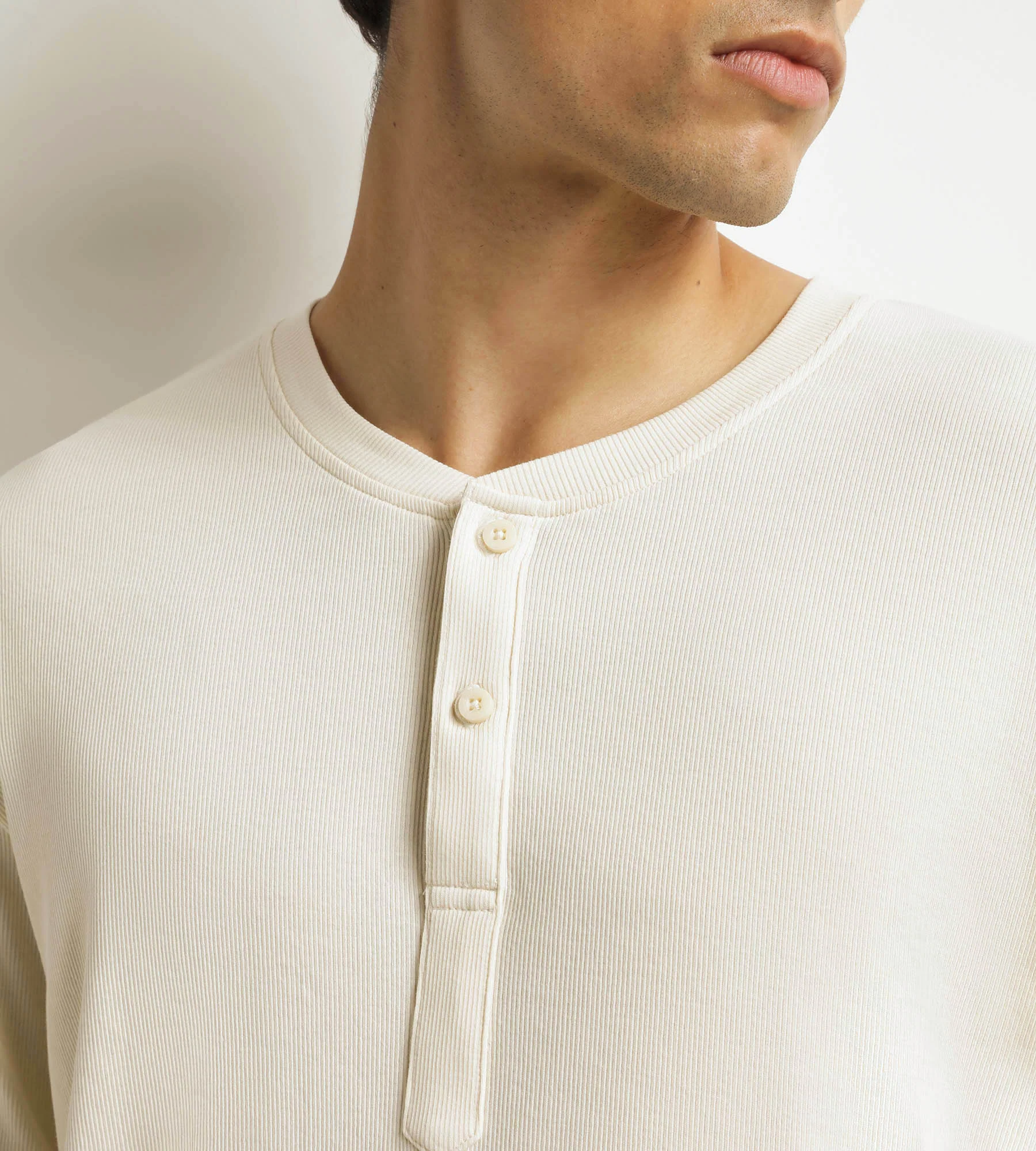 Compuesto por un top de manga larga de punto elástico ligero y un pantalón recto de punto más grueso, este conjunto de pijama para hombre Dim Warm combina calidez y elegancia. El cuello serafino es fácil de poner y tiene botones en contraste para un acabado impecable. Los colores discretos -marfil y verde intenso- son modernos y versátiles, para un conjunto de descanso que se puede llevar de día o de noche.