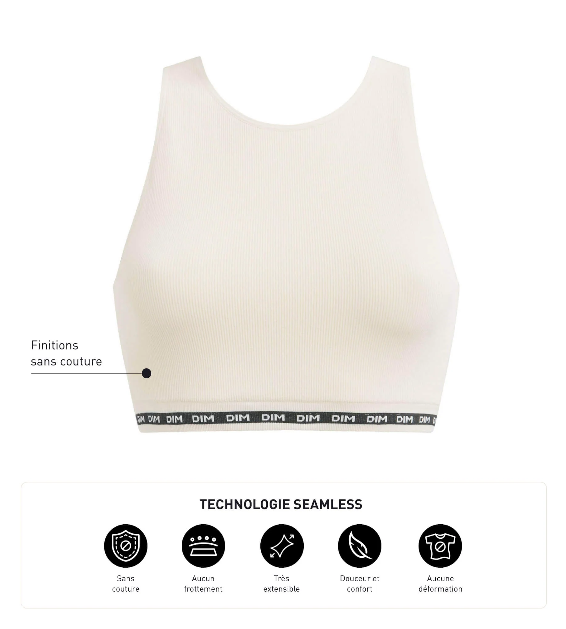 Luce un look casual-chic en tus sesiones de ejercicio con el crop top de algodón modal polyamide de canalé Beis Marfil Dim Icons Seamless, ¡sin costuras!