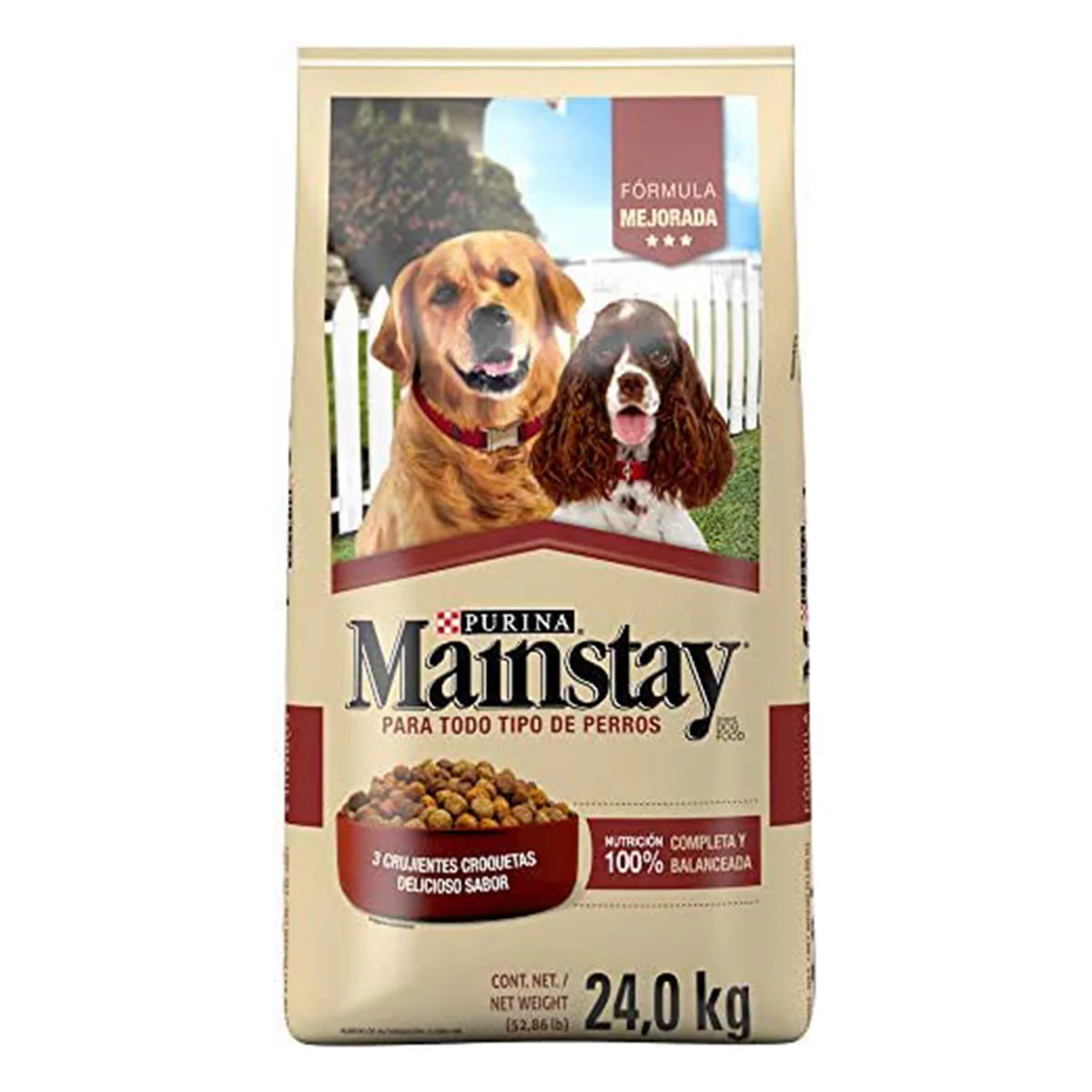 Alimento Para Perro, Purina Mainstay De 24 Kilos, Dale A Tu Mascota Un Alimento Completo Y Balanceado Con Purina Mainstay. Contiene 3 Diferentes Croquetas Crujientes Que Ofrecen Un Delicioso Sabor, Alimento Para Perros Adultos. Adicionado Con Minerales Para Mantener Huesos Y Dientes Fuertes.