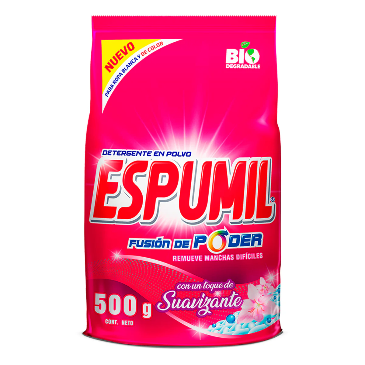 Detergente Espumil Floral En Una Presentación De 500 Gramos, Detergente Libre De Fosfatos, Amigable Con El Medio Ambiente, Permite La Remoción De Manchas Difíciles.