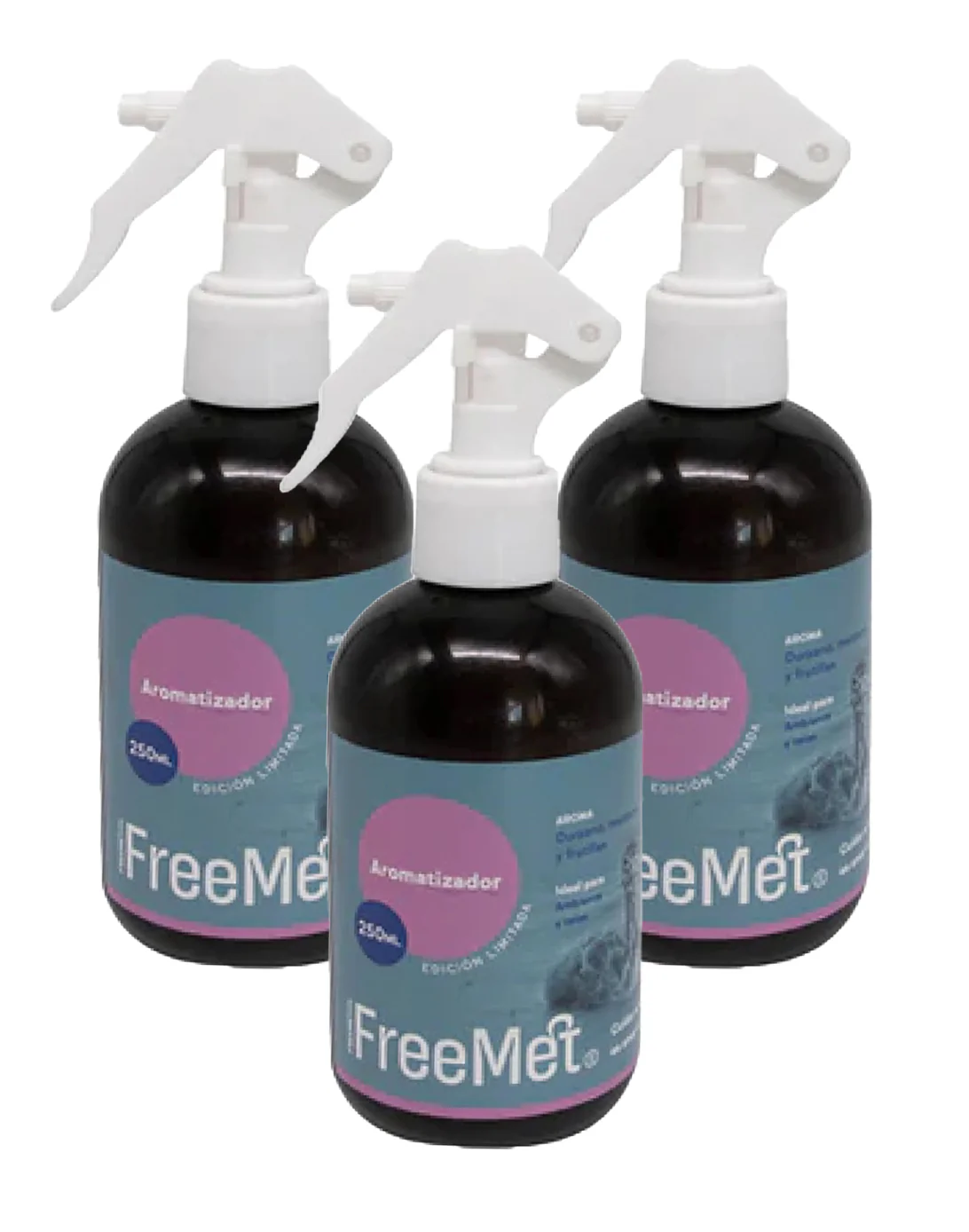 Aromatizador de ambiente y telas con agradable fragancia frutal durazno, manzana y frutillas.