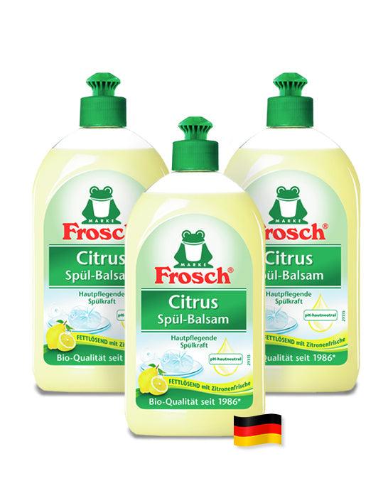 Cuando se usa el lavalozas balsamico de Frosch, cada plato vive un baño de espuma inigualable. Su formula con desengrasantes naturales de cascara de limon elimina facilmente la suciedad, dejando los platos brillantes y con aroma fresco