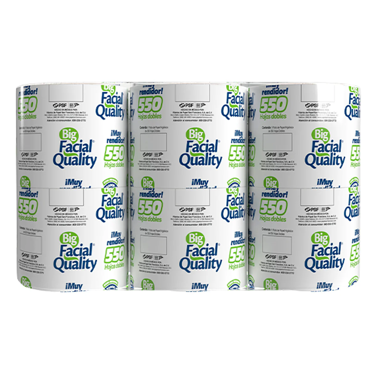 Higiénico Big Facial Quality En Una Presentación Única De 550 Hojas Dobles, Con 12 Piezas, Prueba La Máxima Higiene. Suave Y Delicado Con Tu Piel, Más Rendimiento Y Más Resistencia. Porque Tu Y Tu Familia Se Merecen Lo Mejor