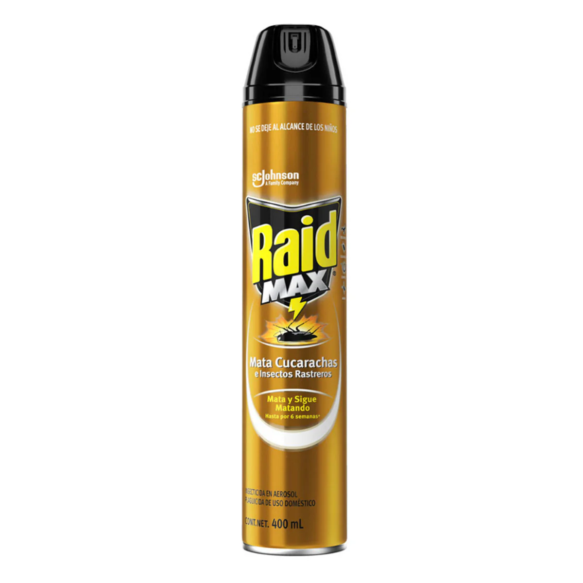 Insecticida En Aerosol, Raid Max. De 400Mililitros. No Deja Entrar A Los Insectos. Ideal Para Eliminar Insectos Rastreros, Con Su Poderosa Formula Las Mata Al Contacto Y Sigue Matando Hasta Por 6 Semanas.