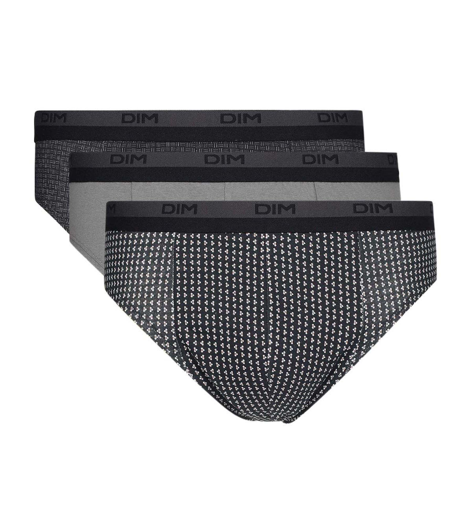 ¡Adoras el estilo extravagante de este juego de 3 calzoncillos tipo slip para hombre 100% algodón Dim Coton Print Gris con estampados cúbicos muy gráficos!