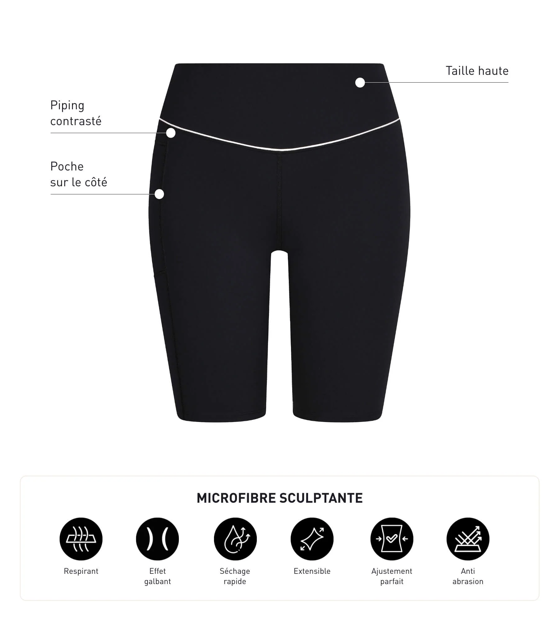 • El tejido de microfibra moldeadora que se ajusta al cuerpo y transpira fenomenal.