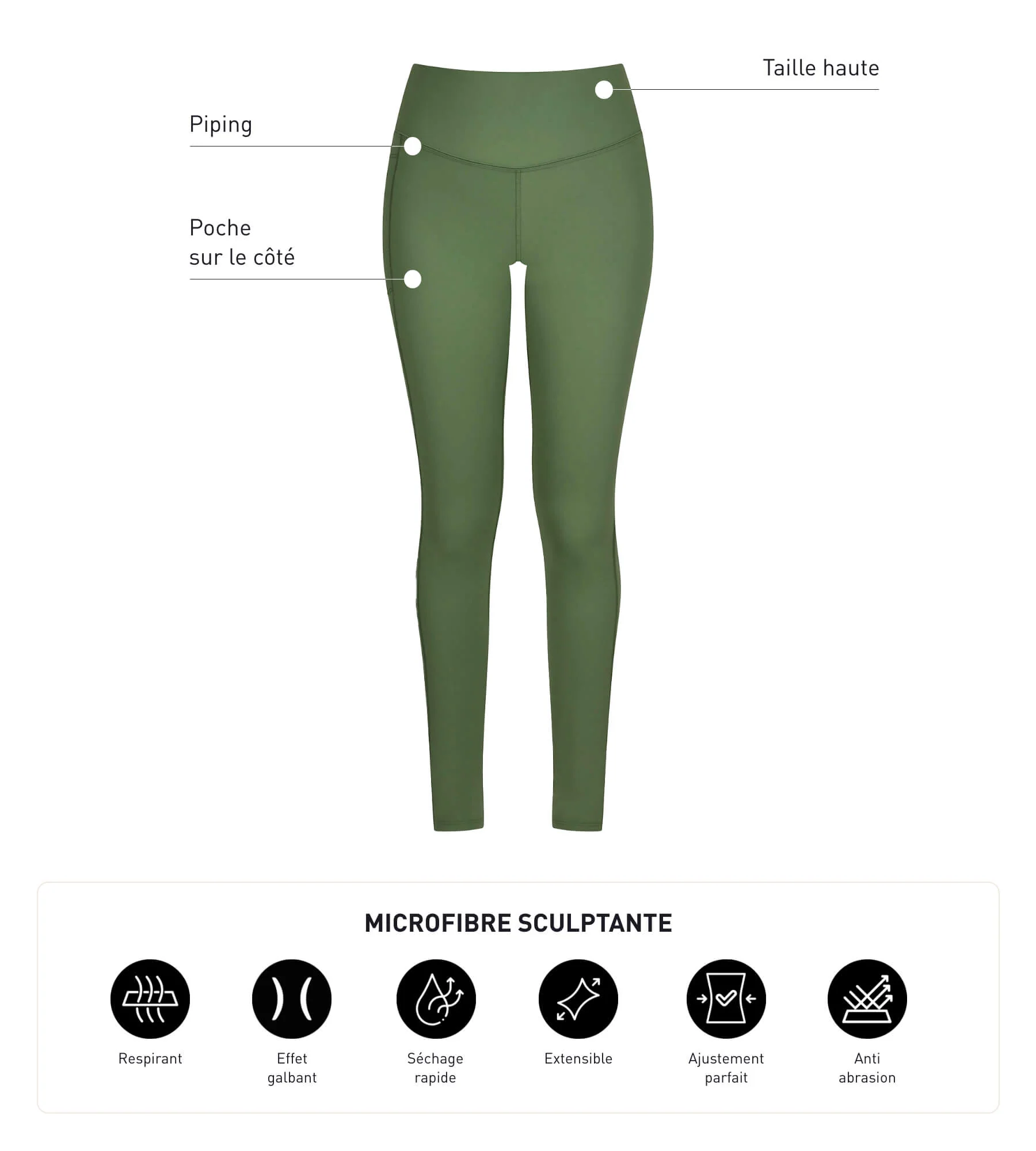 Estos leggings deportivos moldeadores color verde caqui aportan un aire chic a tu vestuario. ¡Combínalos con otras prendas de la colección Dim Move de microfibra o viscosa para moverte con más estilo y comodidad!