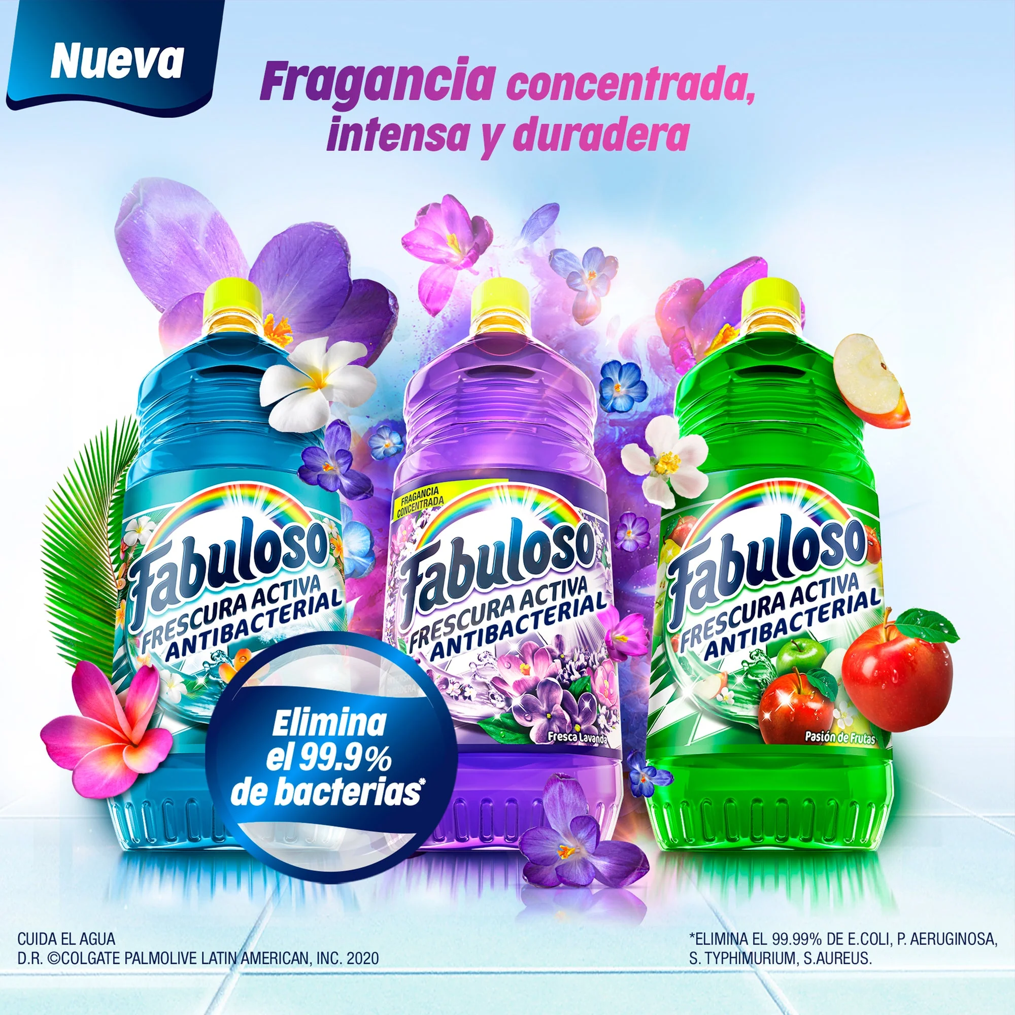 Desinfecta cada espacio de tu hogar con el limpiador multiusos Fabuloso Frescura Activa fresco amanecer, tiene una fórmula capaz de eliminar virus y bacterias de las superficies de tu casa, es un limpiador líquido que deja una deliciosa fragancia duradera que neutraliza los malos olores.