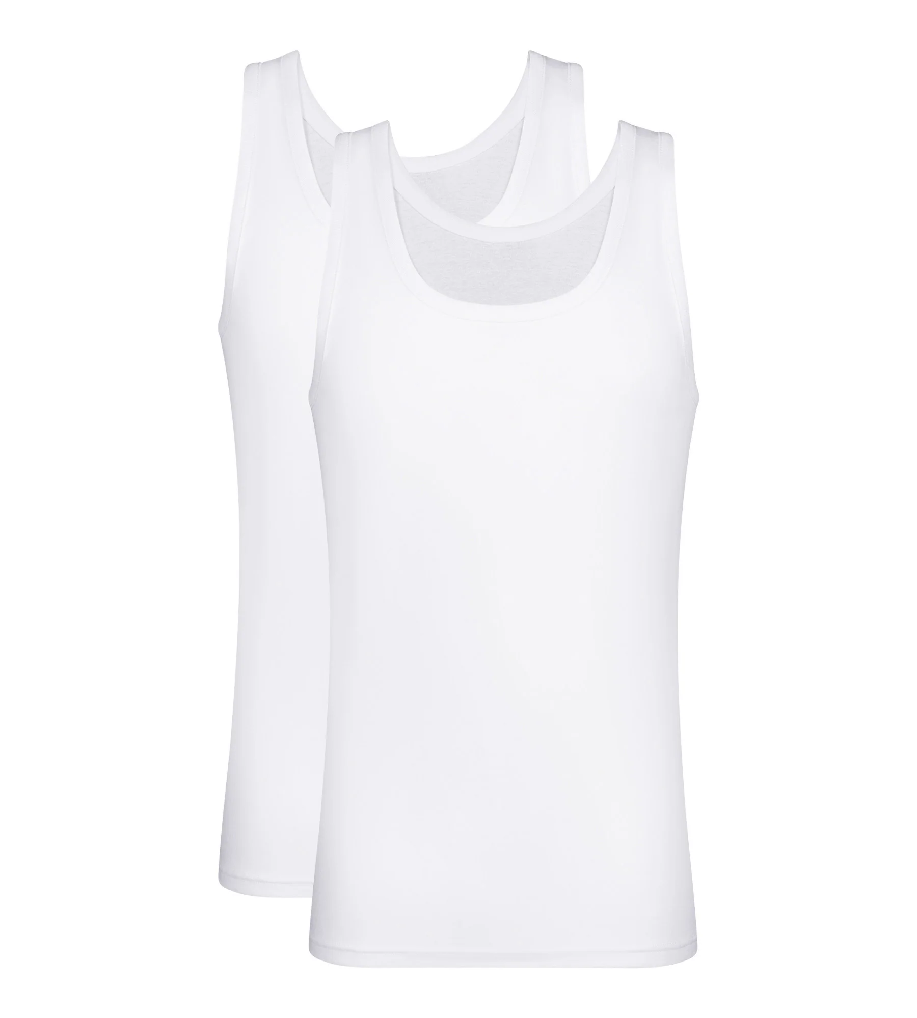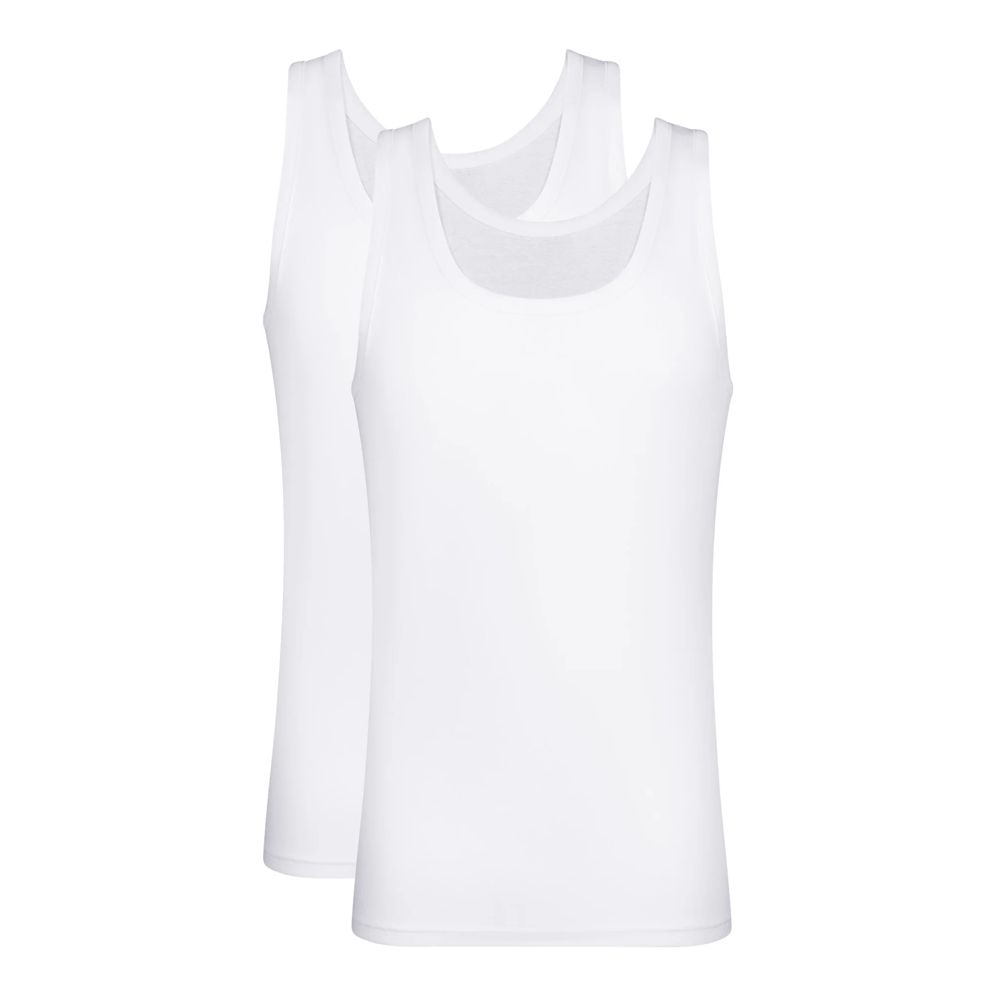Minimaliste et confortable, le lot de 2 débardeurs pour homme blancs en coton accompagne vos journées sans fausse note !