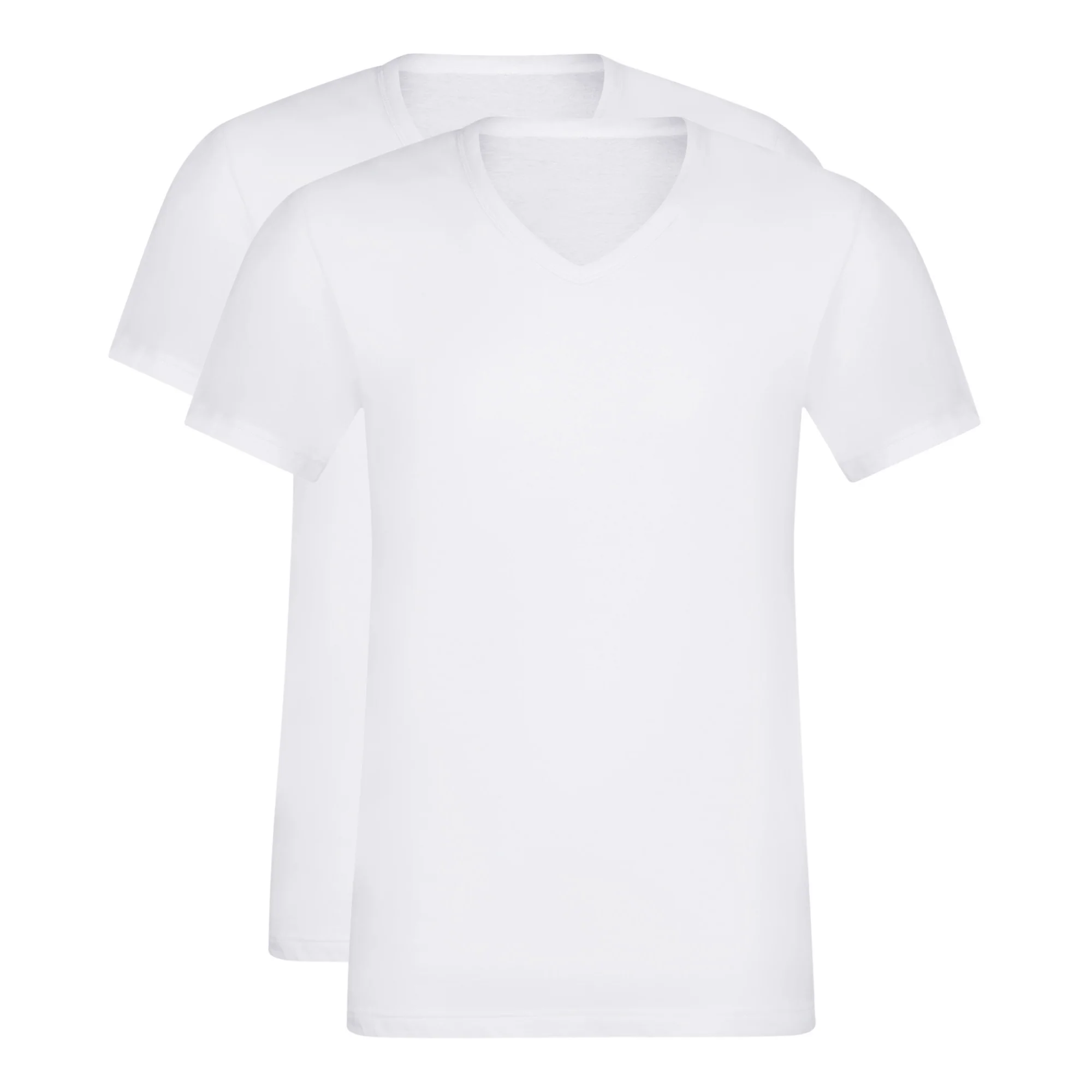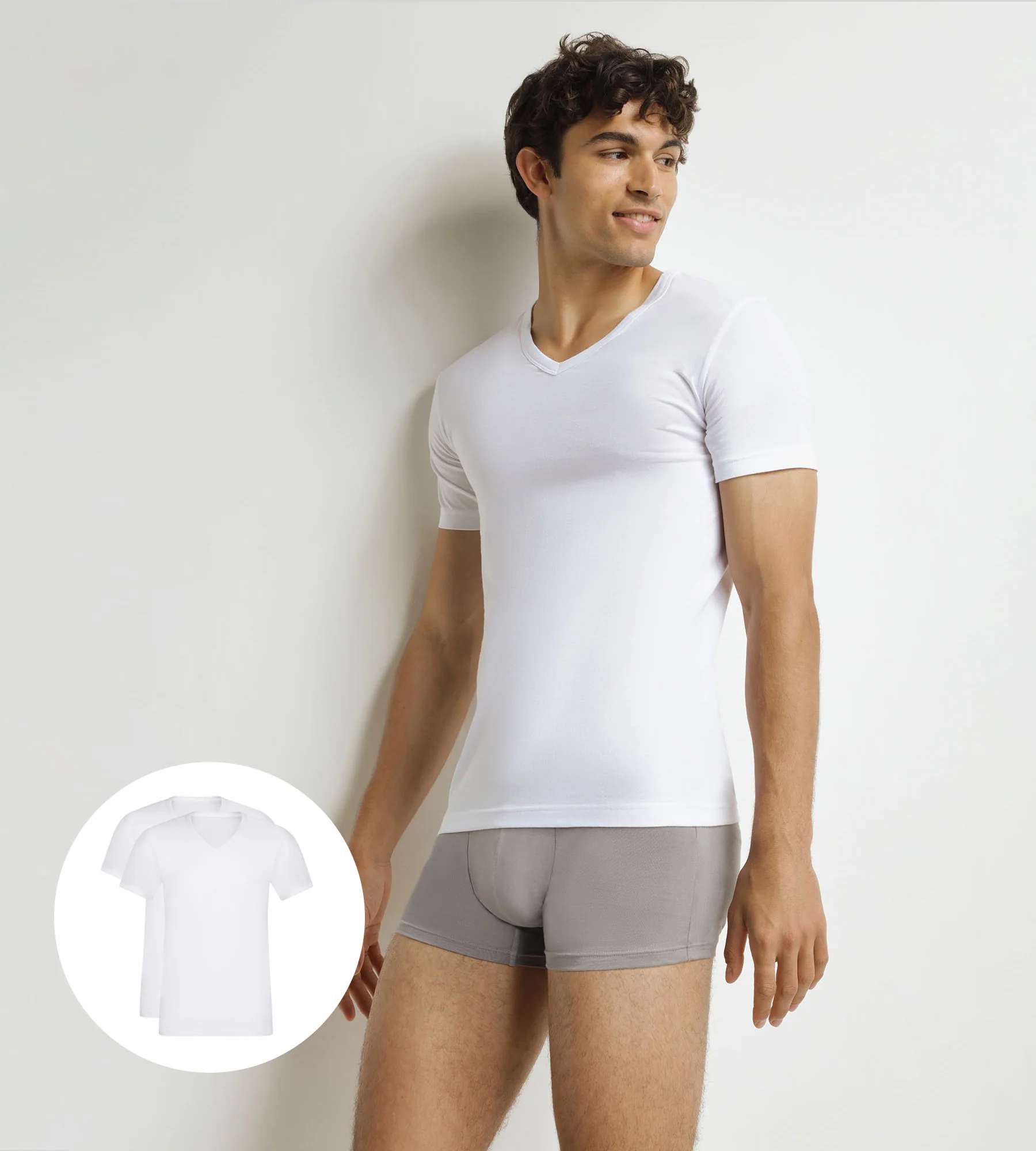 Affichez un look élégant sans effort avec le lot de 2 t-shirts pour homme à col en V, en coton blanc EcoDim !