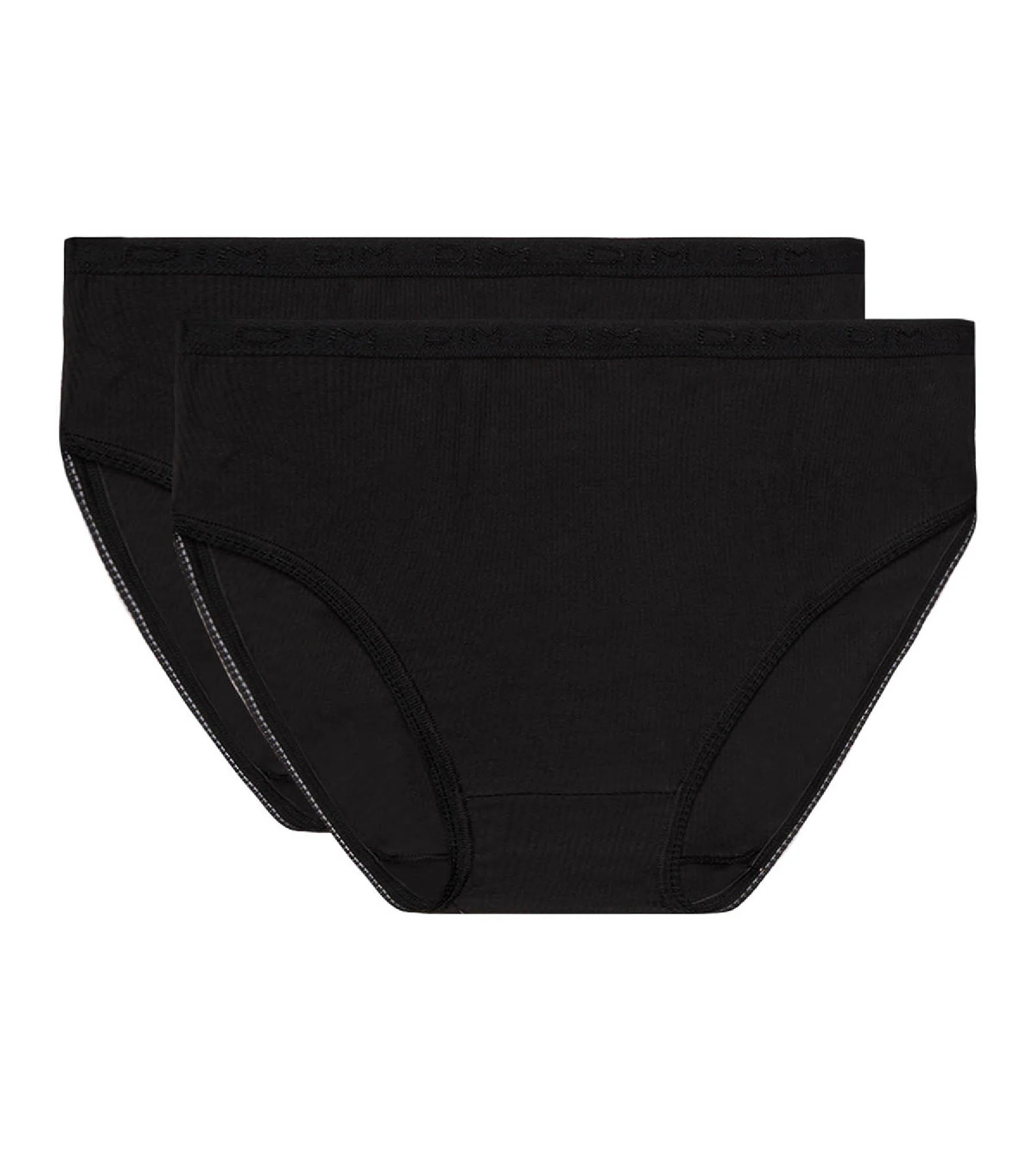 DIM te presenta unas de sus prendas estrella de la ropa interior de mujer: las braguitas negras de talle alto Pur Coton 100 % algodón, clásicas y muy, pero que muy cómodas. Fáciles de llevar y combinar con todas tus prendas, estas bragas vienen en un pack de dos para que disfrutes el doble de ellas todos los días de la semana. Siéntete cómoda y protegida, sin importar cuanto te muevas y olvídate de que las llevas puestas. ¿Te encantaría tenerlas? No esperes más, las tenemos en distintas tallas, ¡echa un vistazo y pídenos la que mejor se ajuste a ti!.