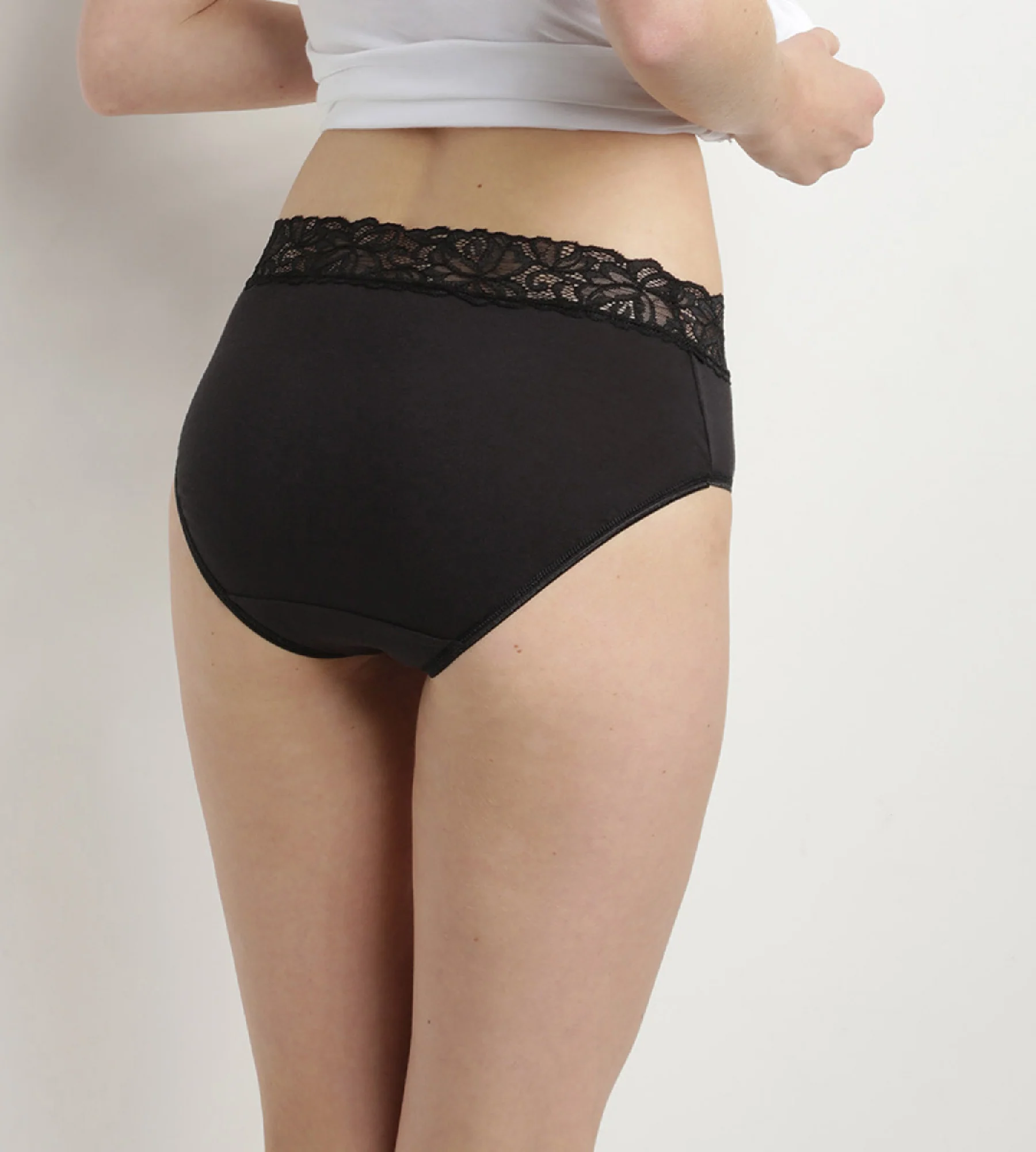 Las dos braguitas negras de talle alto de algodón elástico de la colección Coton Plus Féminine combinan comodidad y feminidad con su cintura de encaje. ¡No esperes más para probarlas!
