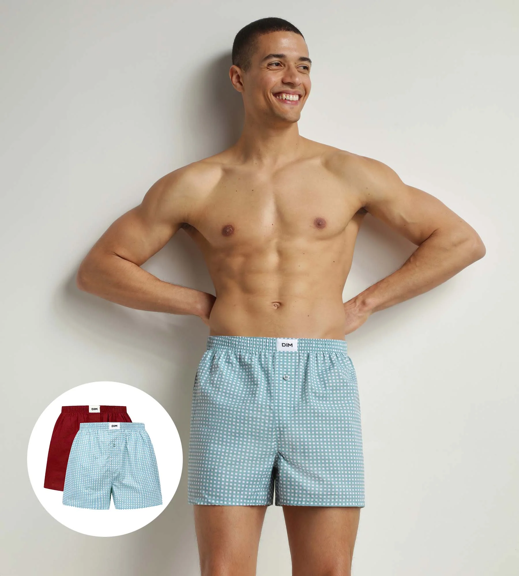 Fabricados con fibras de alta calidad eco-responsables, en este lote hay 2 calzoncillos de algodón orgánico, en color menta y rojo tiza. Estas prendas viriles son además más amables con el medioambiente, al pertenecer a la gama Dim Good.