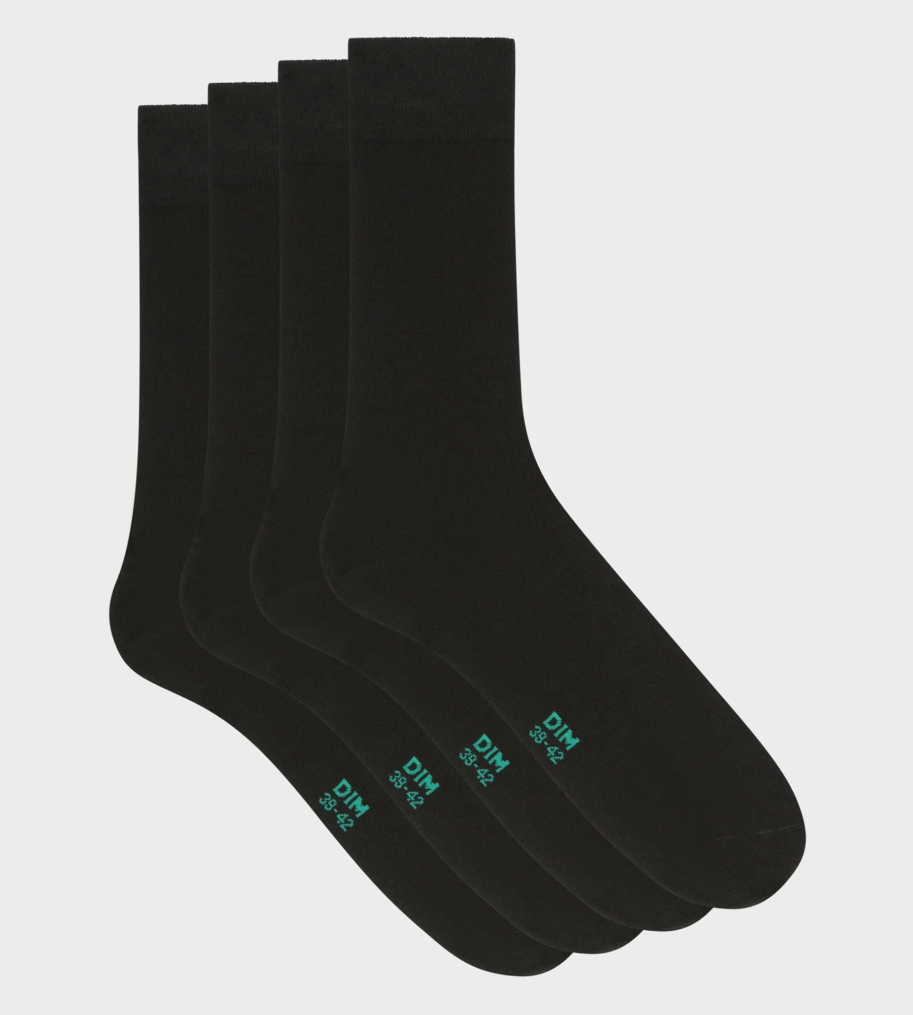 ¿¿Te gustan los estilismos depurados? ¿¿No te gusta que asome el corte de tus calcetines con tu piel bajo los pantalones. Escoge entonces este pack de 2 pares de calcetines altos de hombre de algodón orgánico Negro de la gama Dim Good.