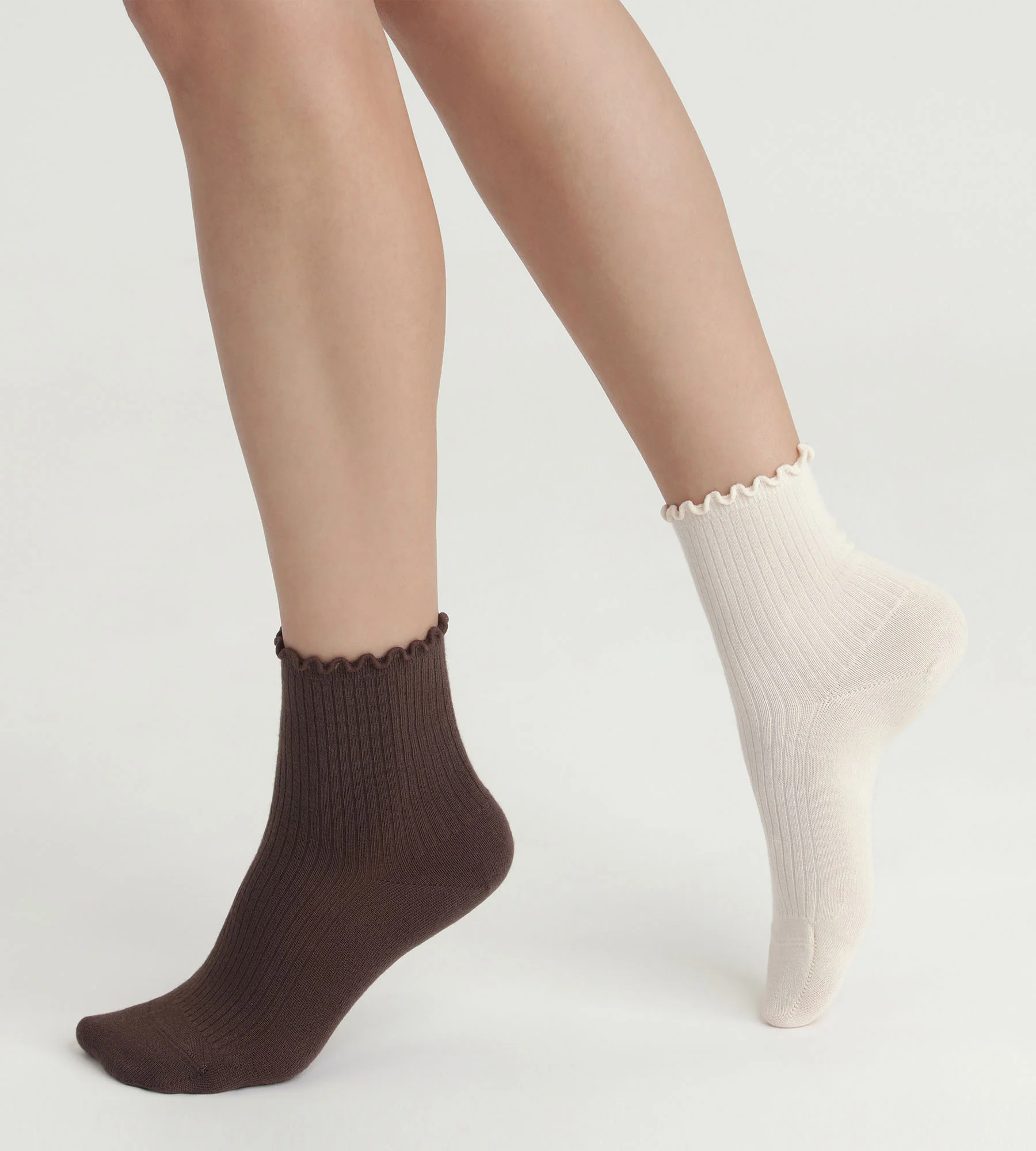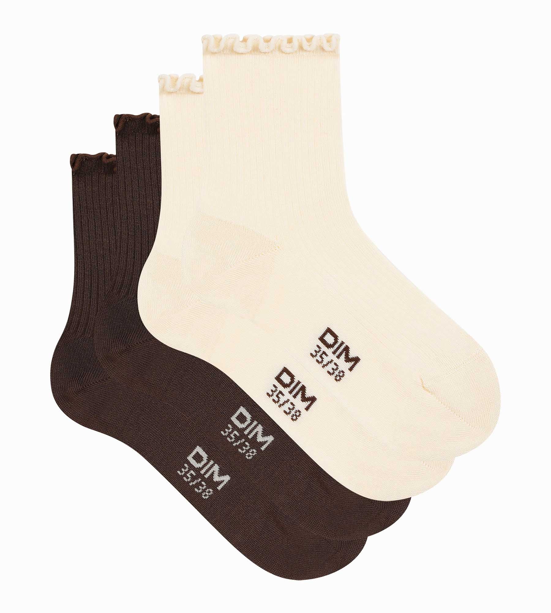 Disfruta del estilo coqueto y goloso del pack de 2 pares de calcetines de mujer Dim en modal crema y chocolate!
