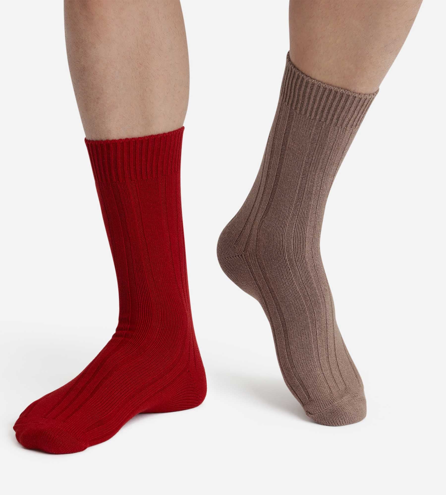 Añade personalidad a tus básicos con este pack de 2 pares de calcetines para hombre de Dim Bamboo en tonos marrón madera y rojo tierra.