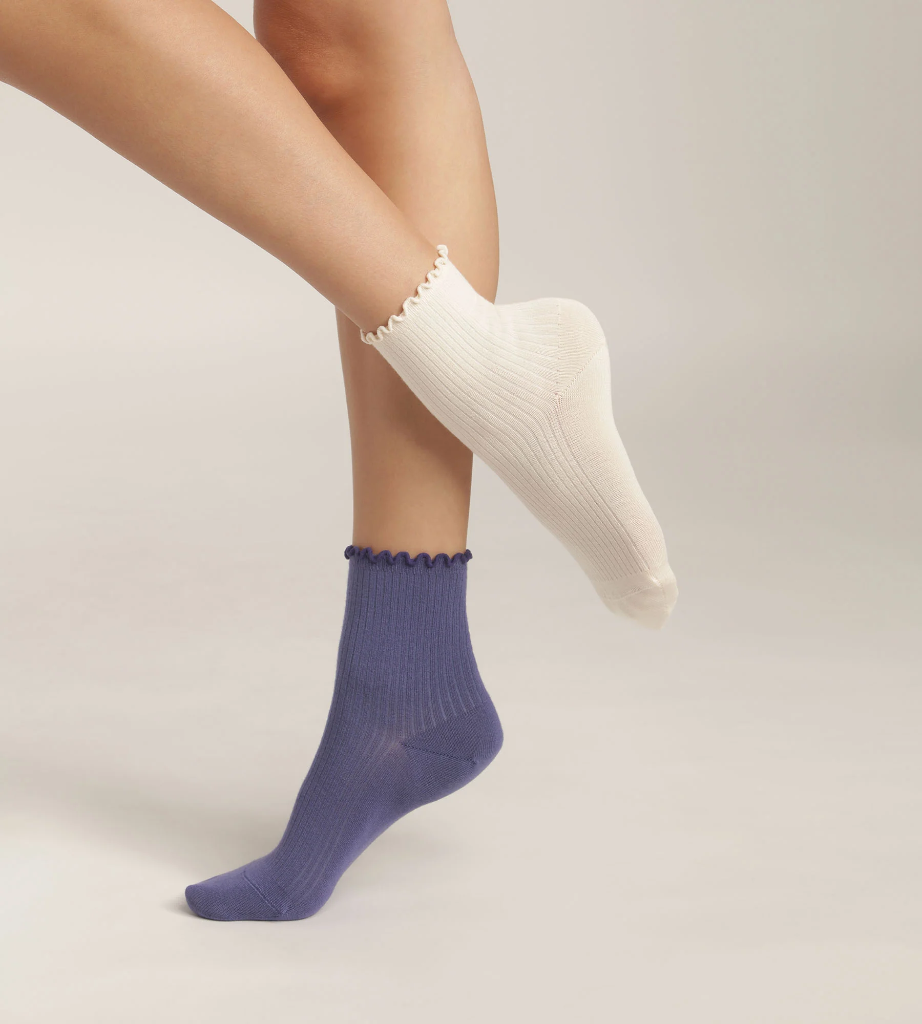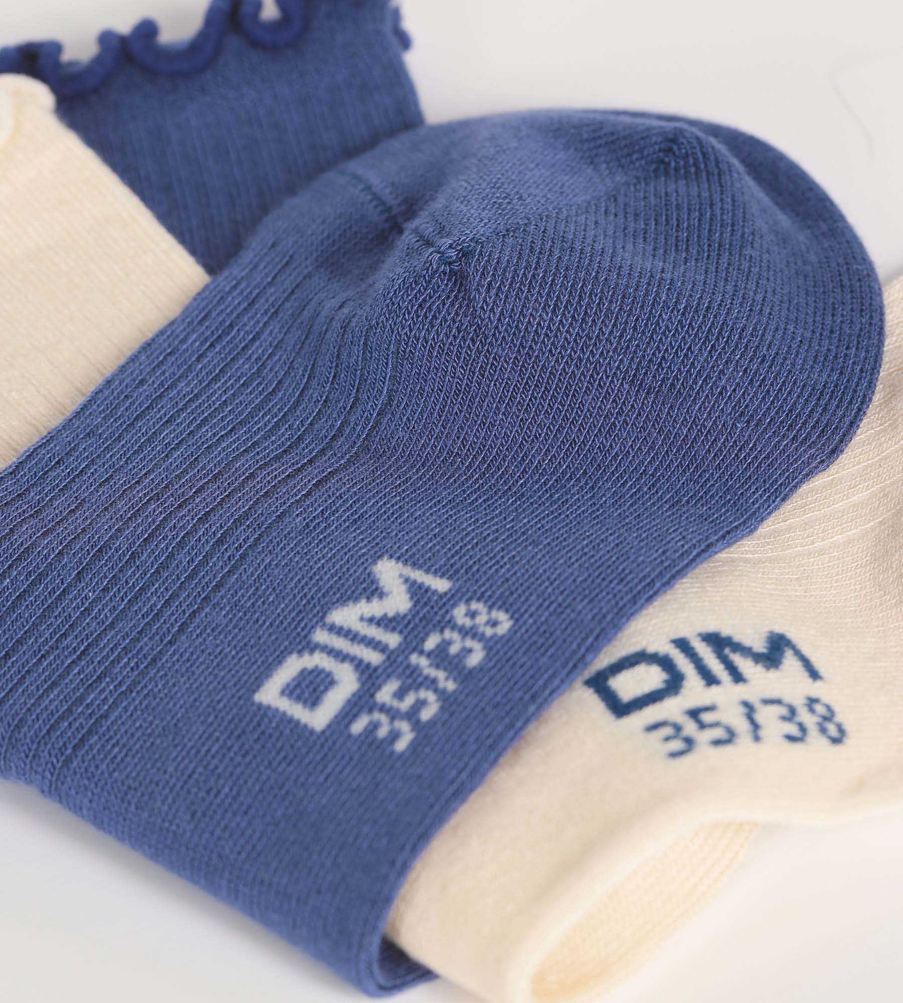 Adopta un look refinado con el pack de 2 pares de calcetines con volantes para mujer Dim Modal, ¡en azul turquesa y crema!
