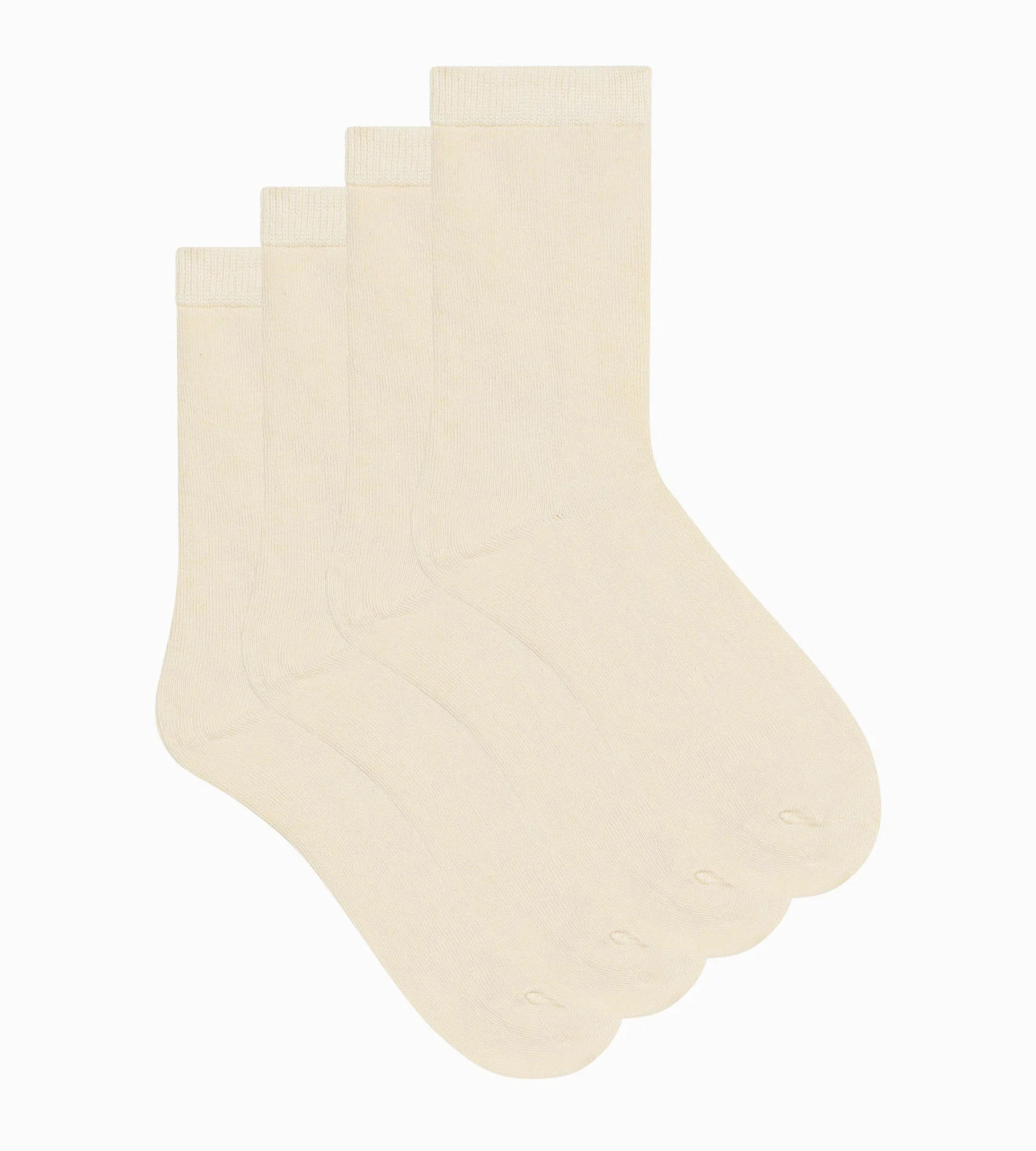 Envuelve tus pies en suavidad con el Pack de 2 pares de calcetines Dim Thermo Polar para mujer de algodón color crema.