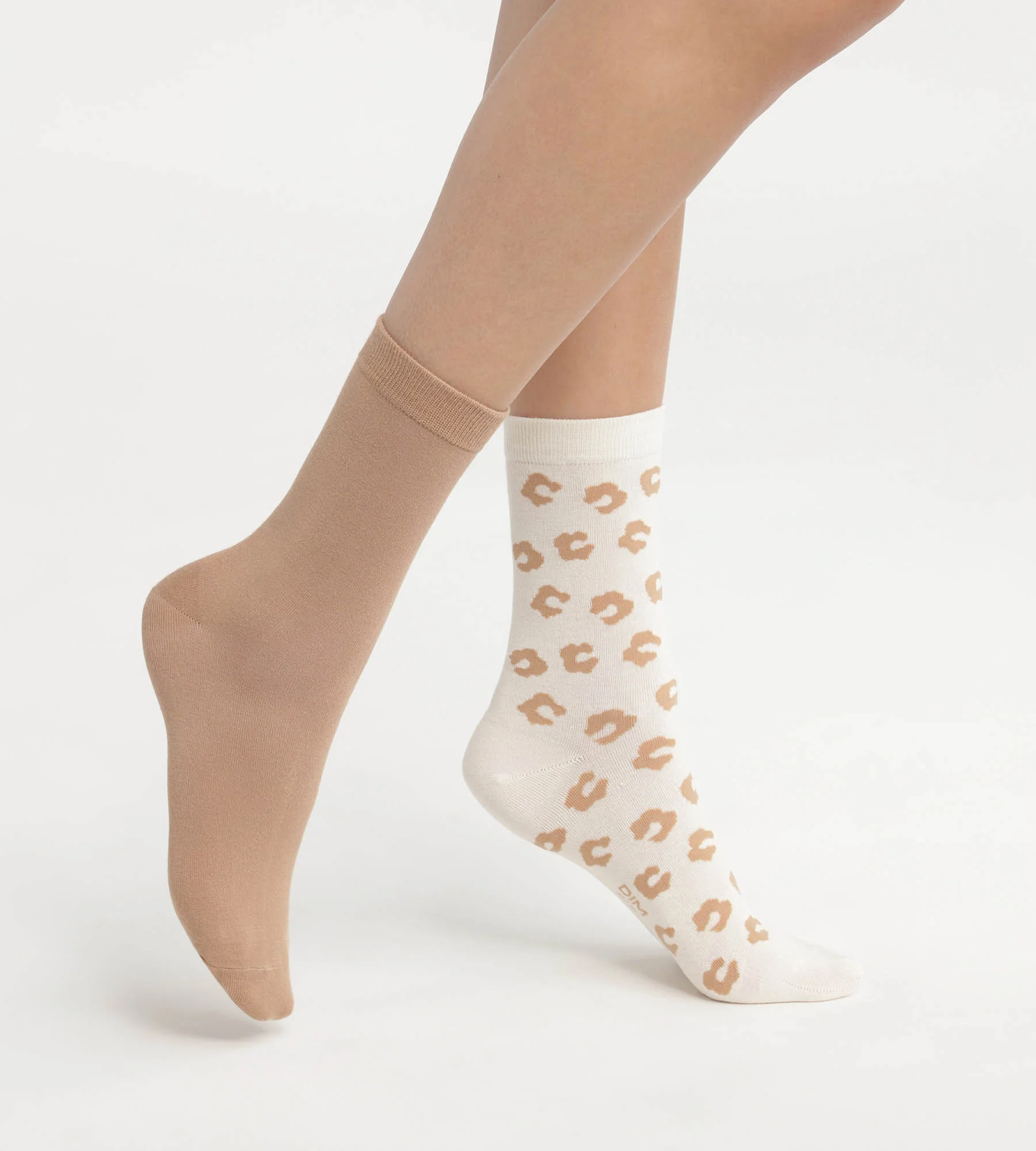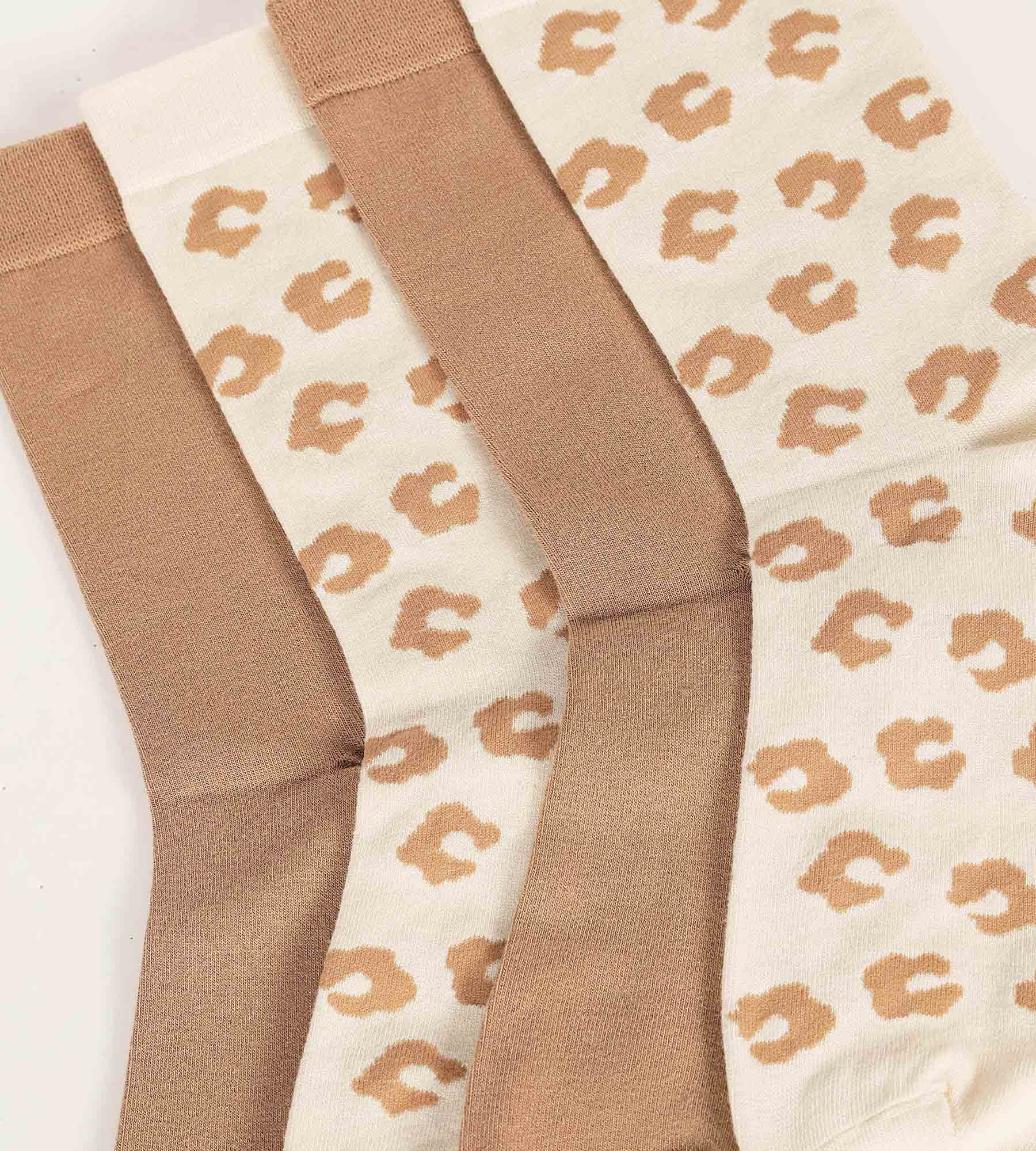 Combina comodidad y modernidad con el pack de 2 pares de calcetines de mujer crema estampado y terracota Dim Bambú